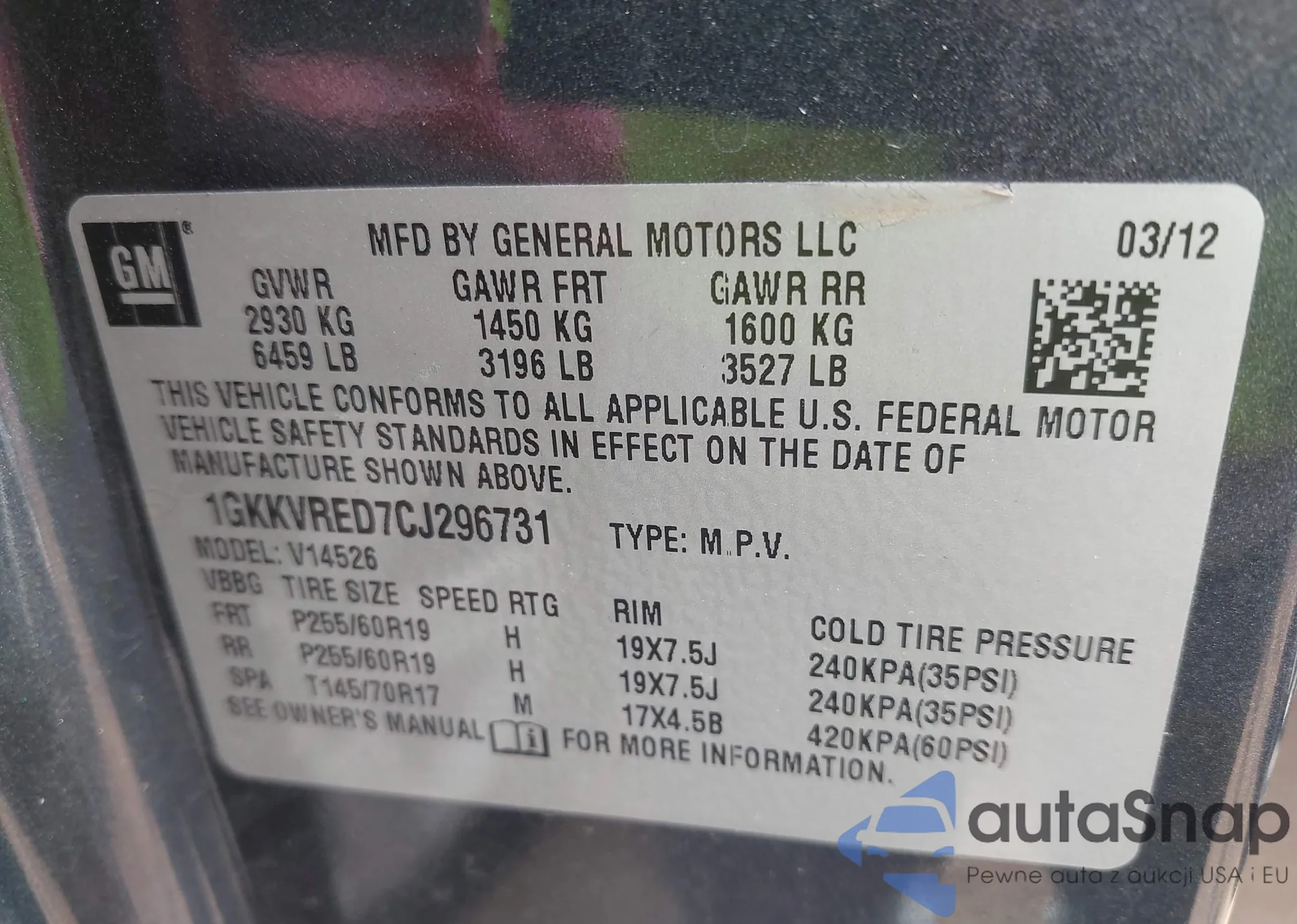 LOT: 43365216 VIN: 1GYKPHRS4LZ103388