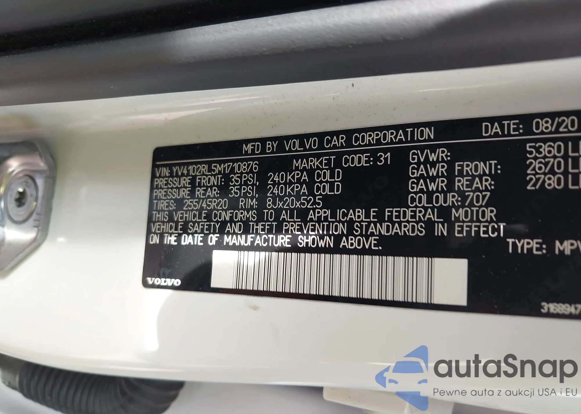 LOT: 43456941 VIN: YV4102RL5M1710876