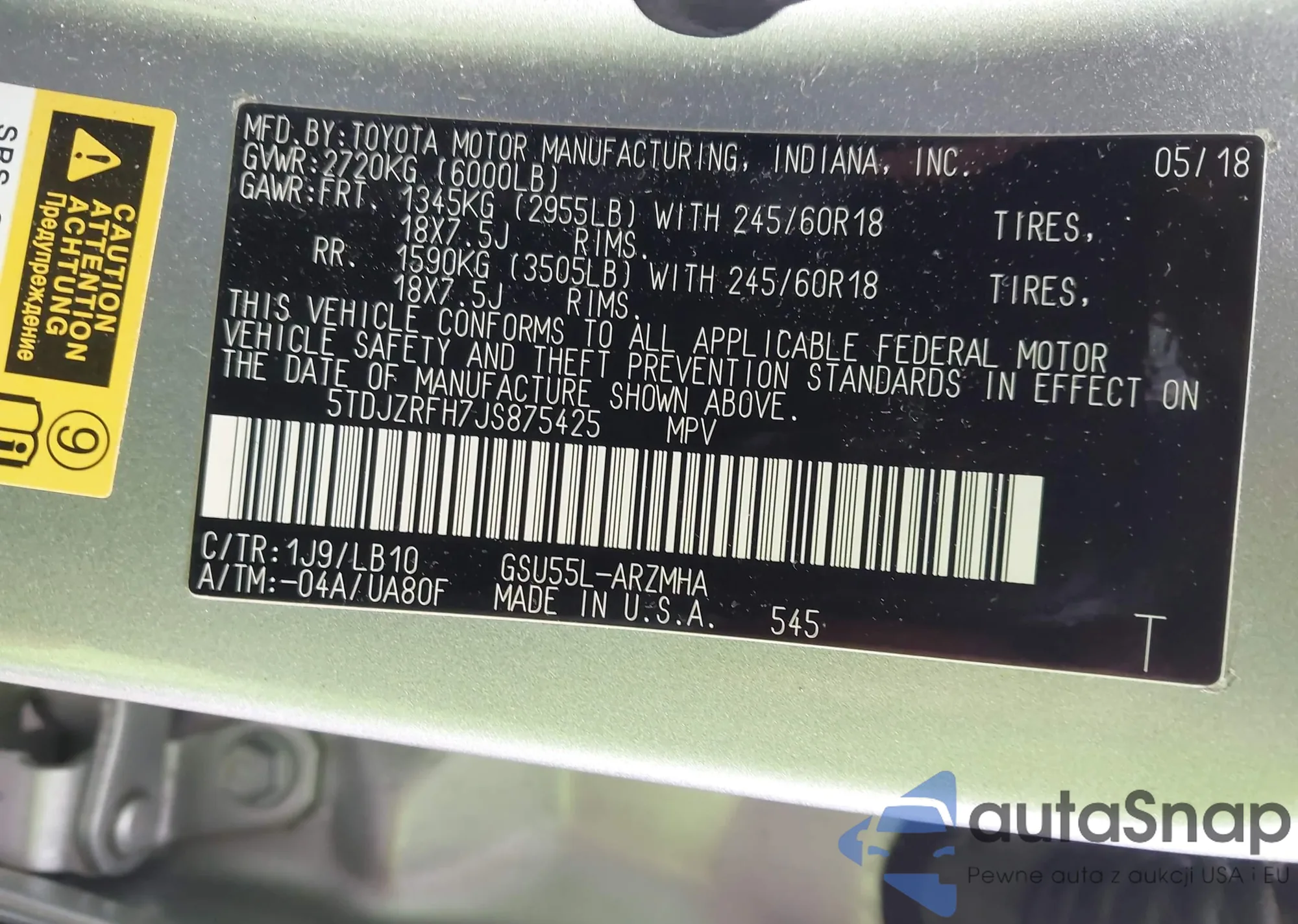 • VIN 5TDKZRFH9JS527159