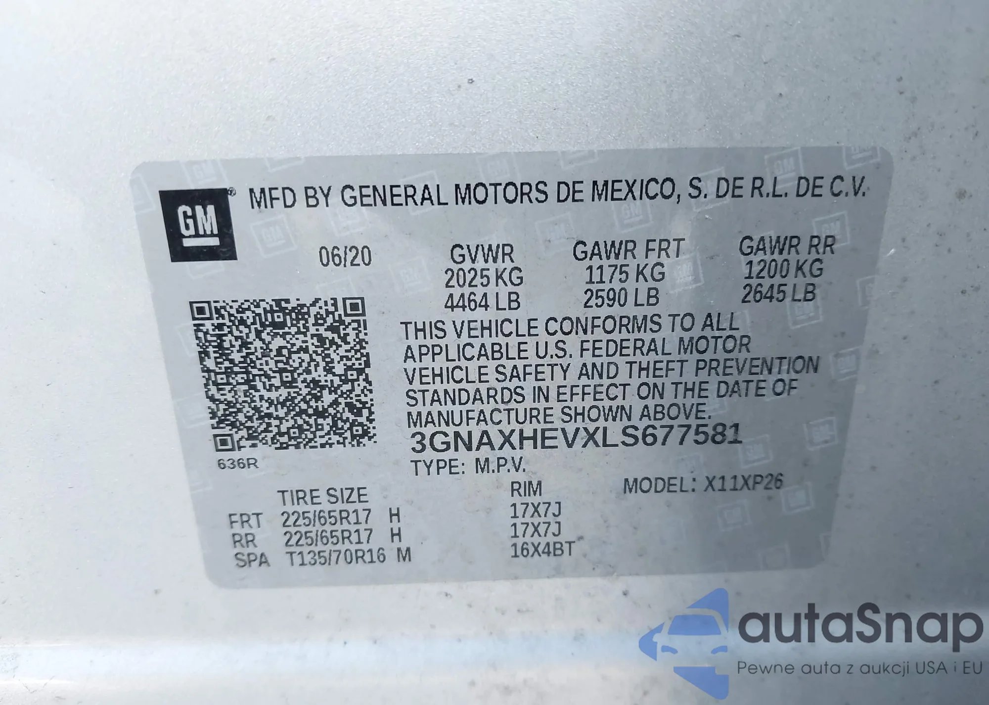 LOT: 43462146 VIN: 3GNAXHEVXLS677581