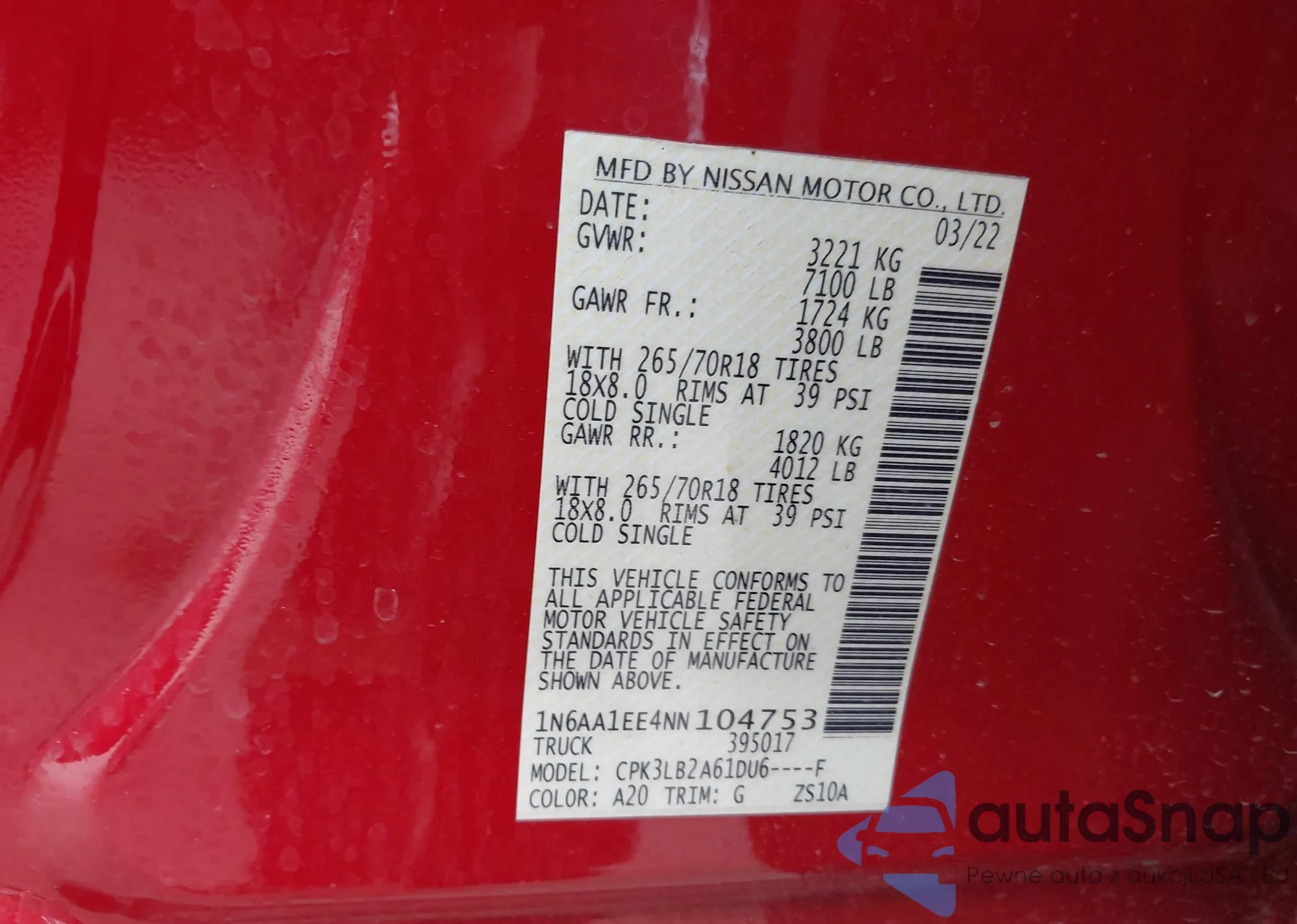 • VIN 1N6AA1EE4NN104753