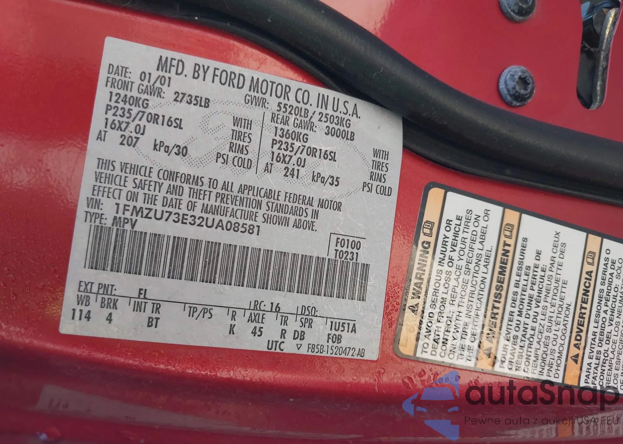 • VIN 1FMZU73E32UA08581