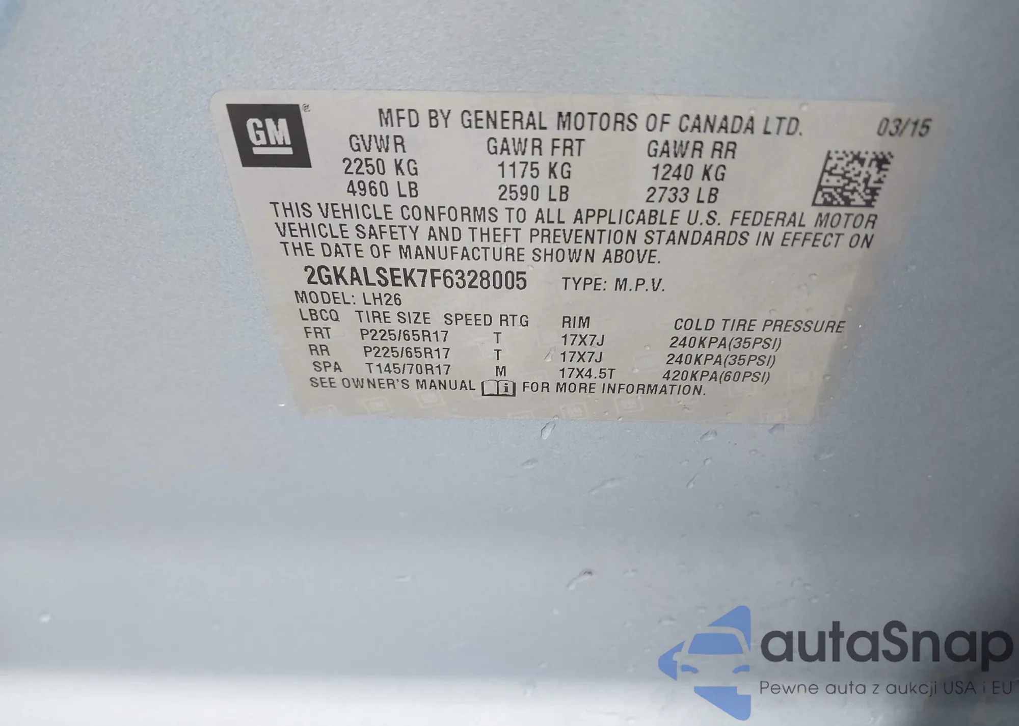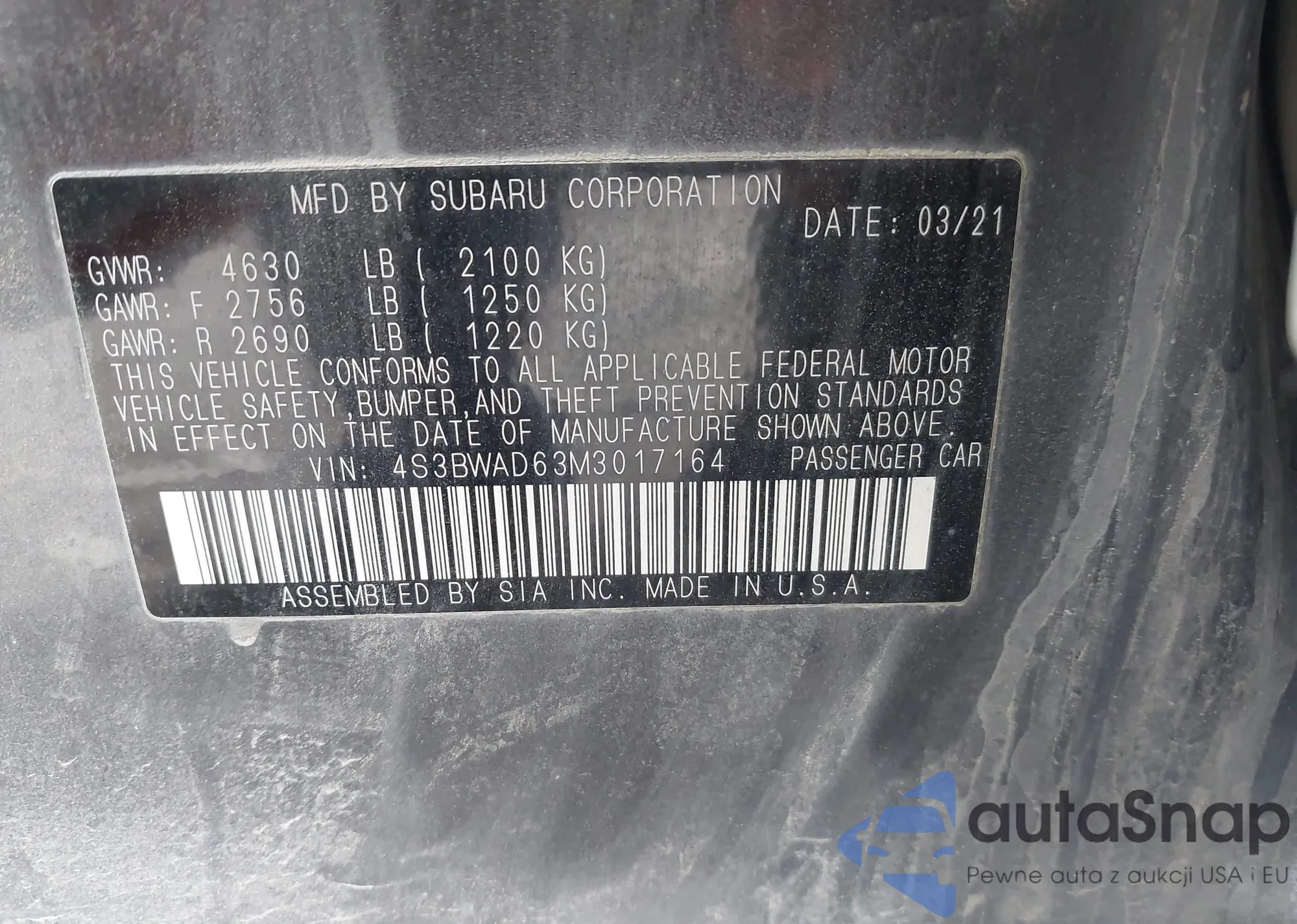 LOT: 43815963 VIN: 4S3BWAD63M3017164