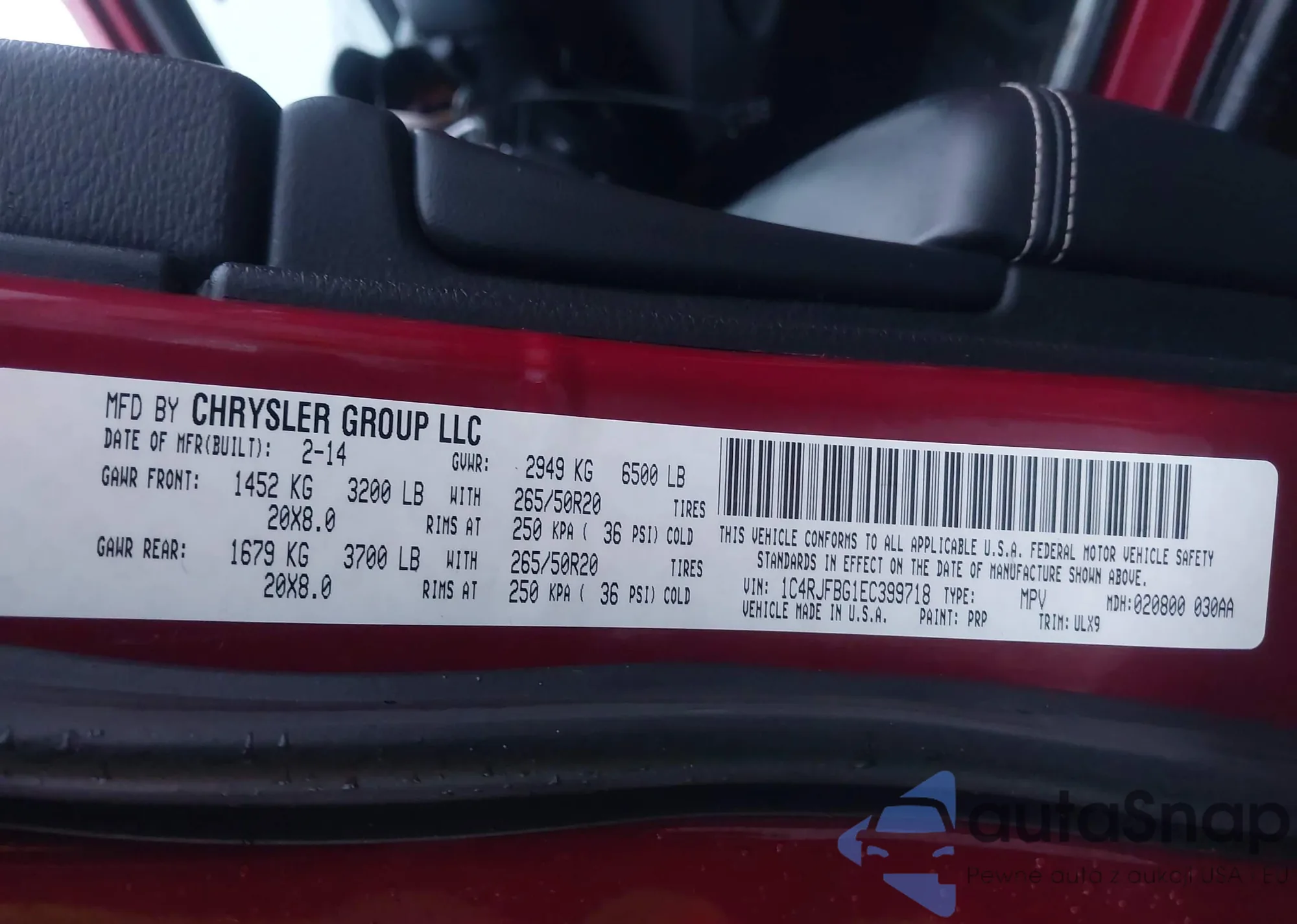LOT: 43872470 VIN: 1C4RJFAG4CC199284