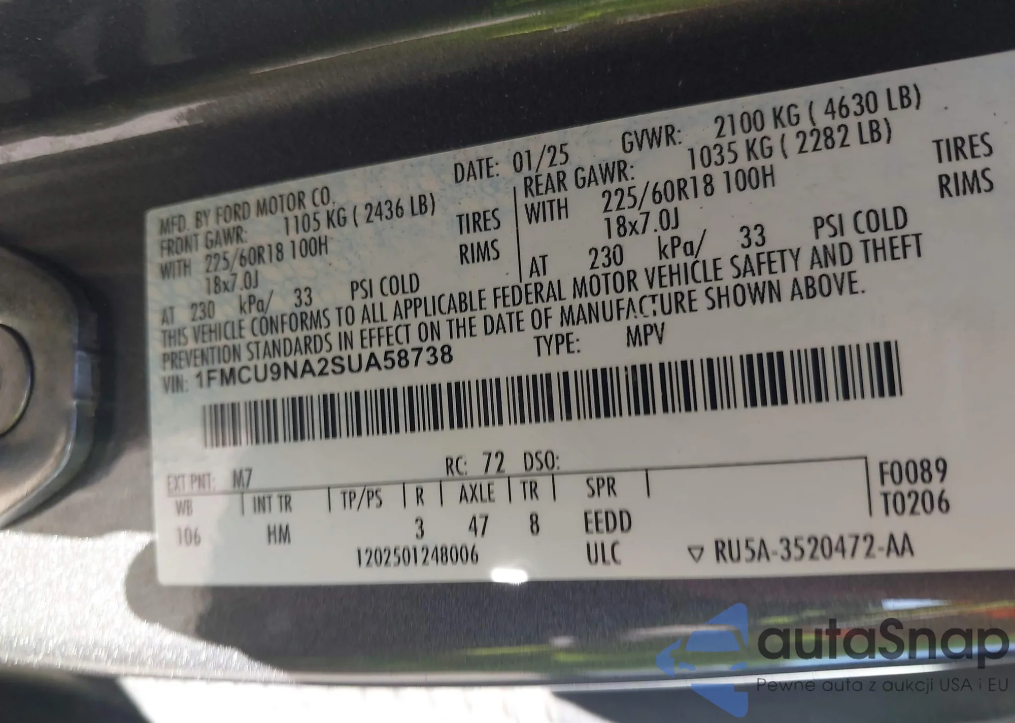 • VIN 4T1BF1FK5FU895438