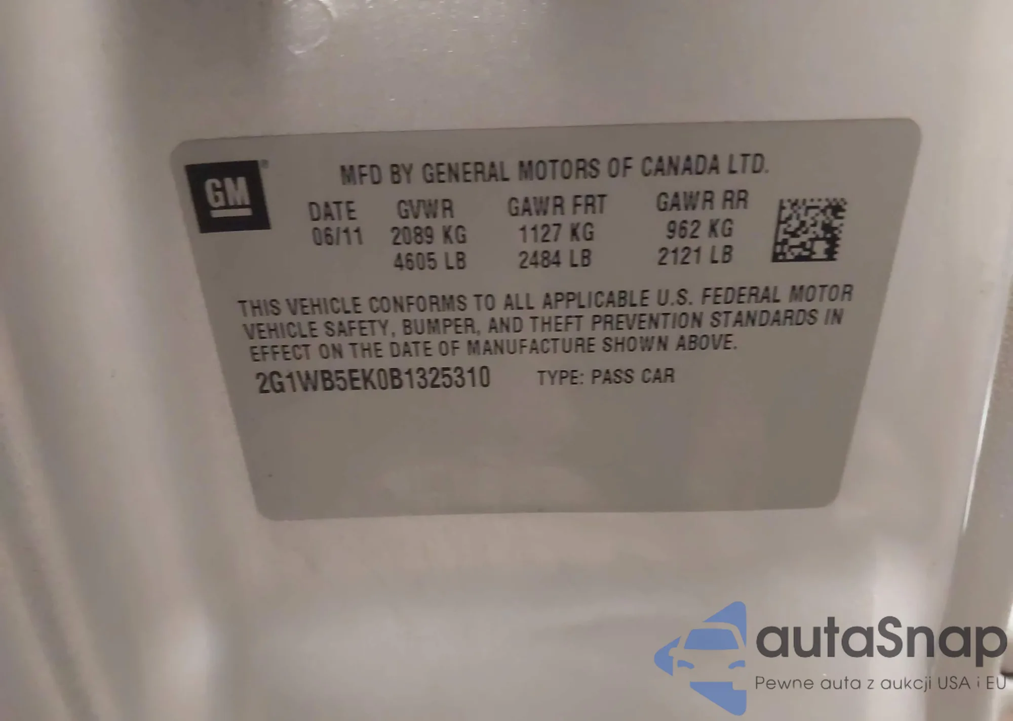LOT: 43818686 VIN: 5XYZKDAG7BG060682
