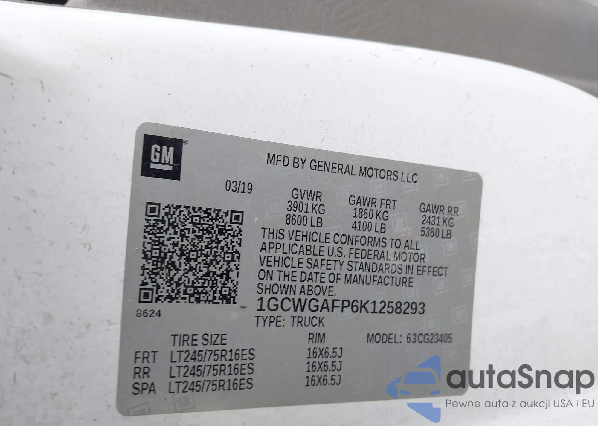 LOT: 43946743 VIN: 1GCWGAFP6K1258293