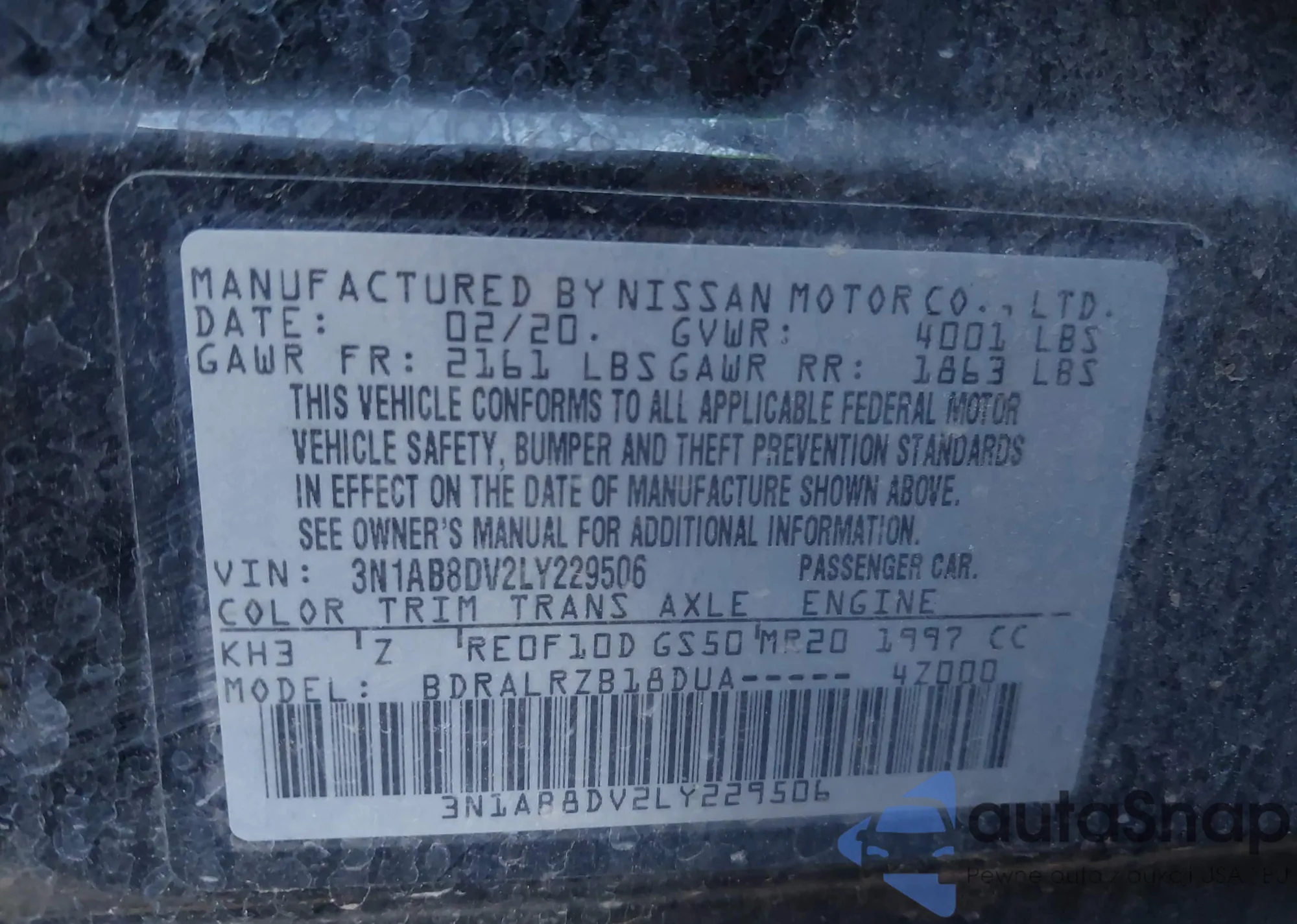 • VIN 3N1AB8DV2LY229506