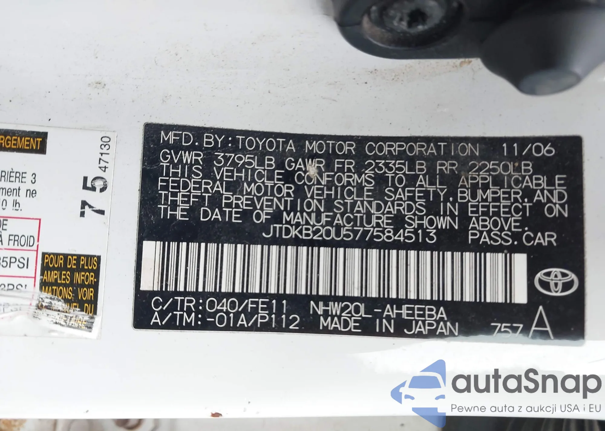 LOT: 43566222 VIN: JTDKB20U577584513