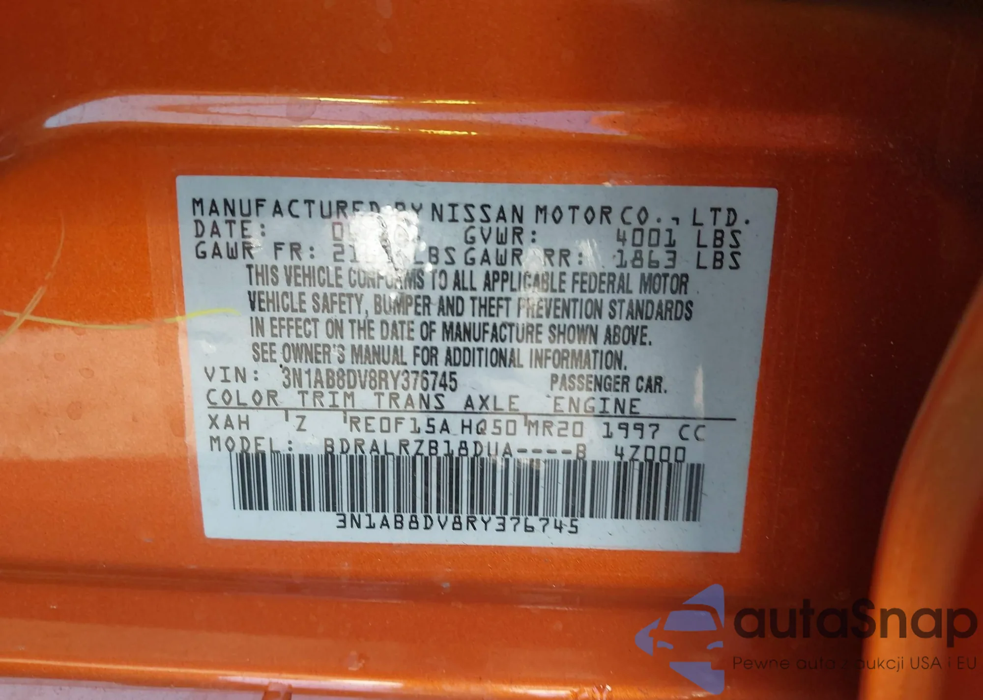 • VIN 3N1AB8DV8RY376745