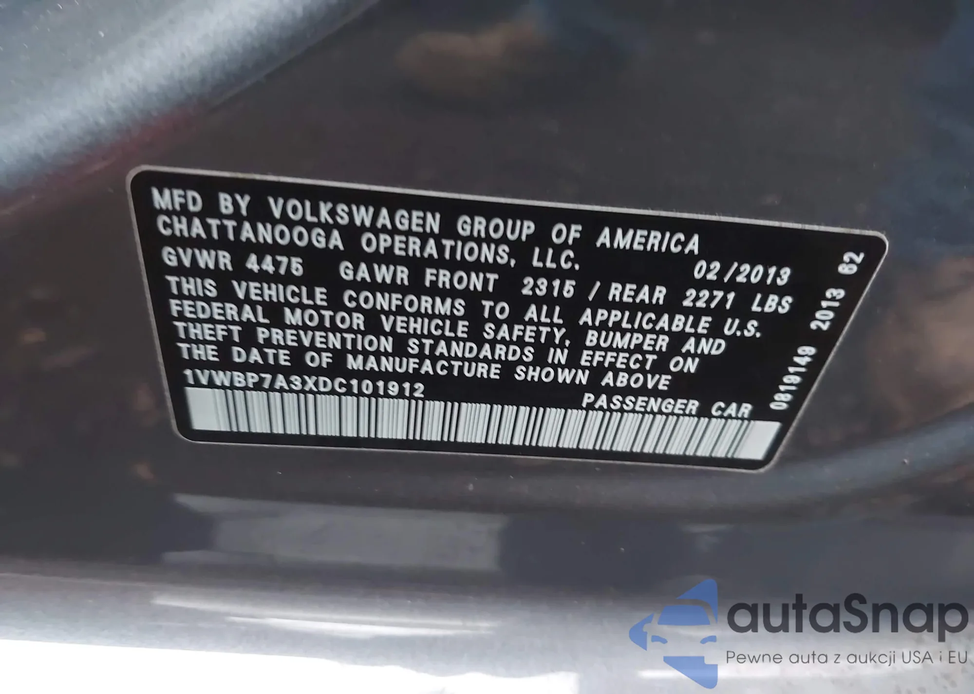 • VIN 1HGCR2F83DA085056