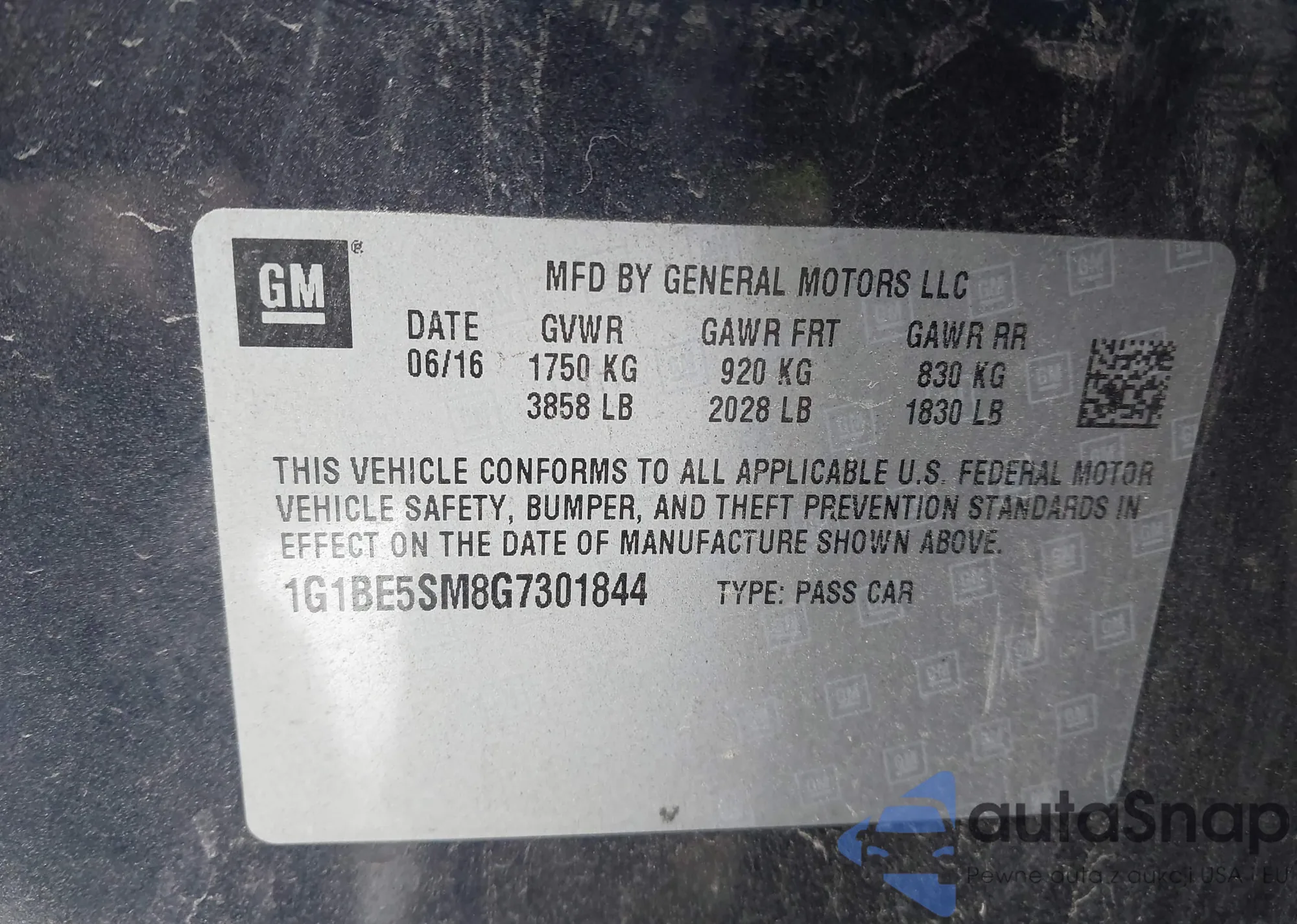 LOT: 41257853 VIN: 1G1BE5SM8G7301844