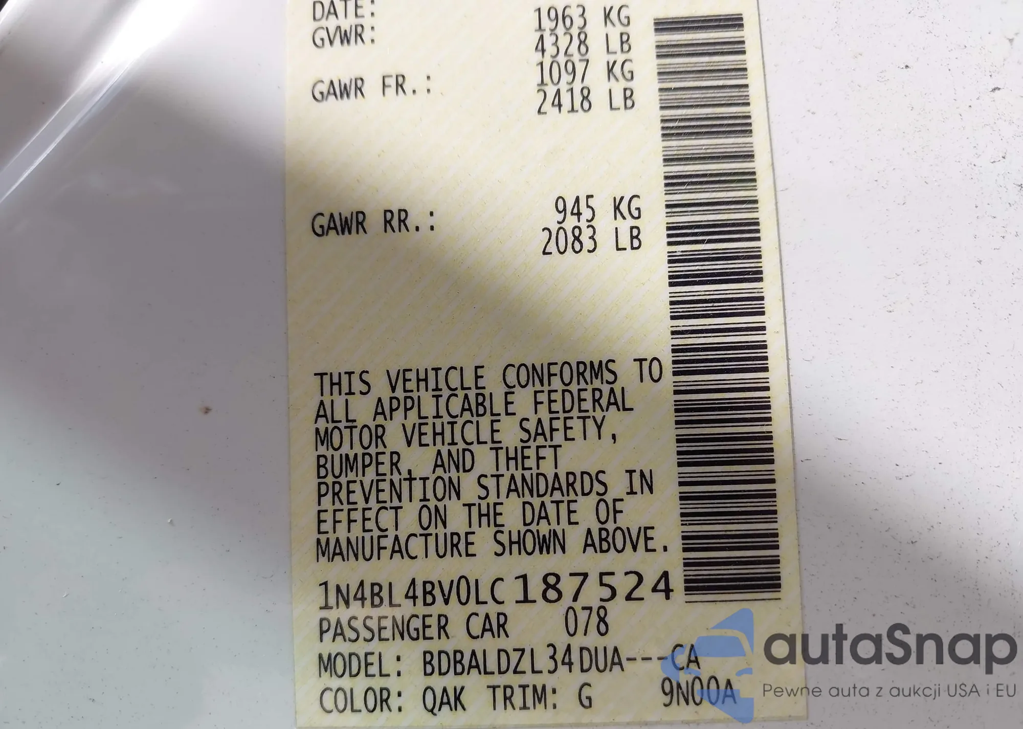 LOT: 42585272 VIN: WAUAVAFD9BN020384