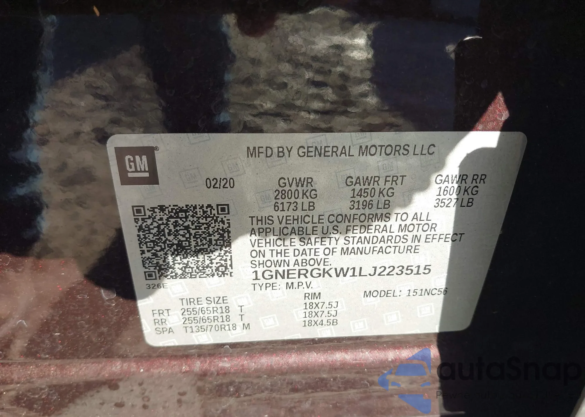 LOT: 43831801 VIN: 5TDJW5G15FS118291