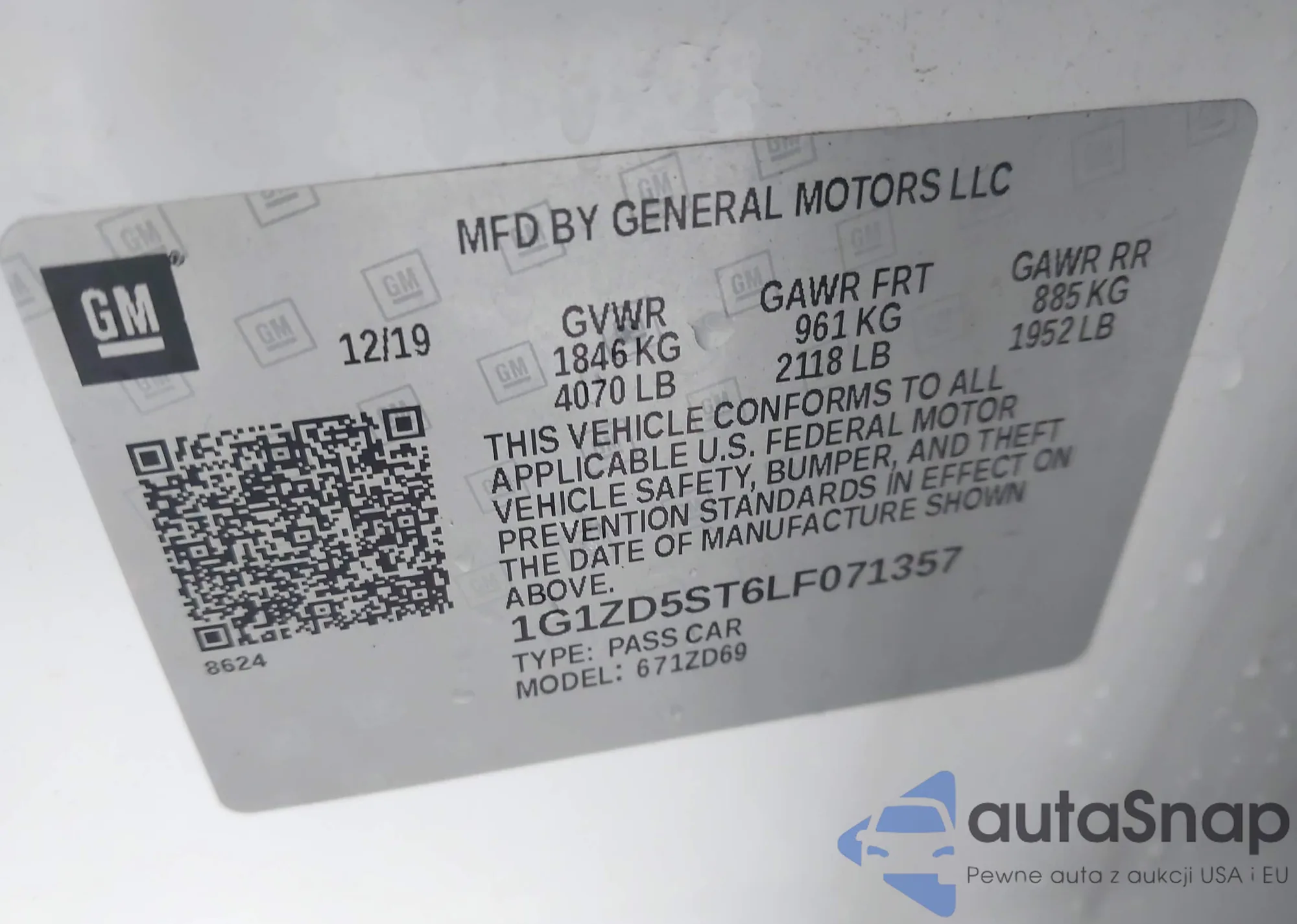 LOT: 43545848 VIN: 1G1ZD5ST6LF071357