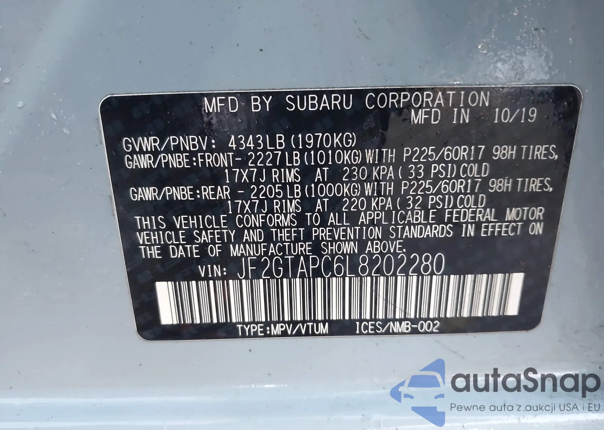 LOT: 43818096 VIN: 5LMJJ3LTXKEL25178