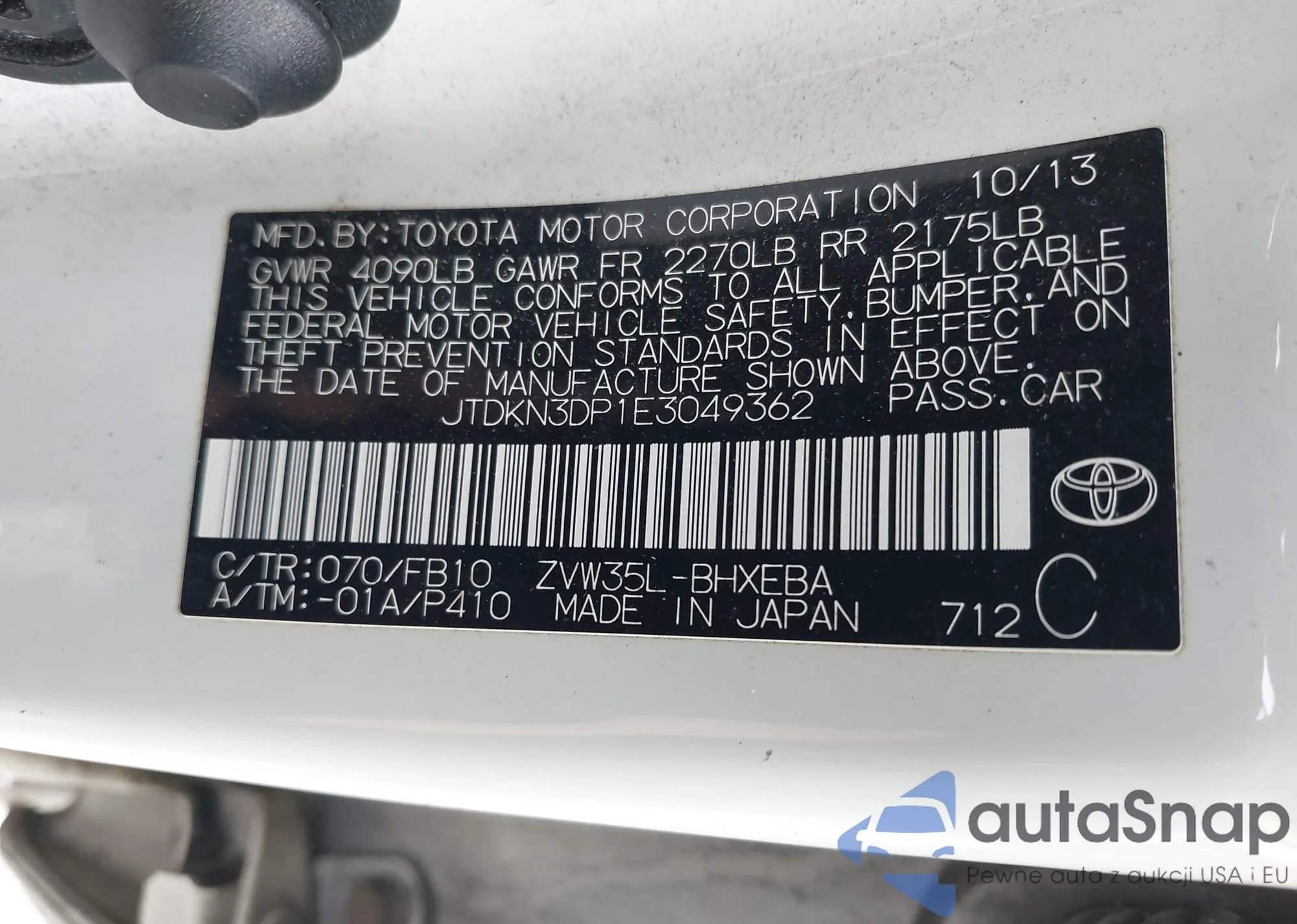 • VIN JTDKN3DP1E3049362