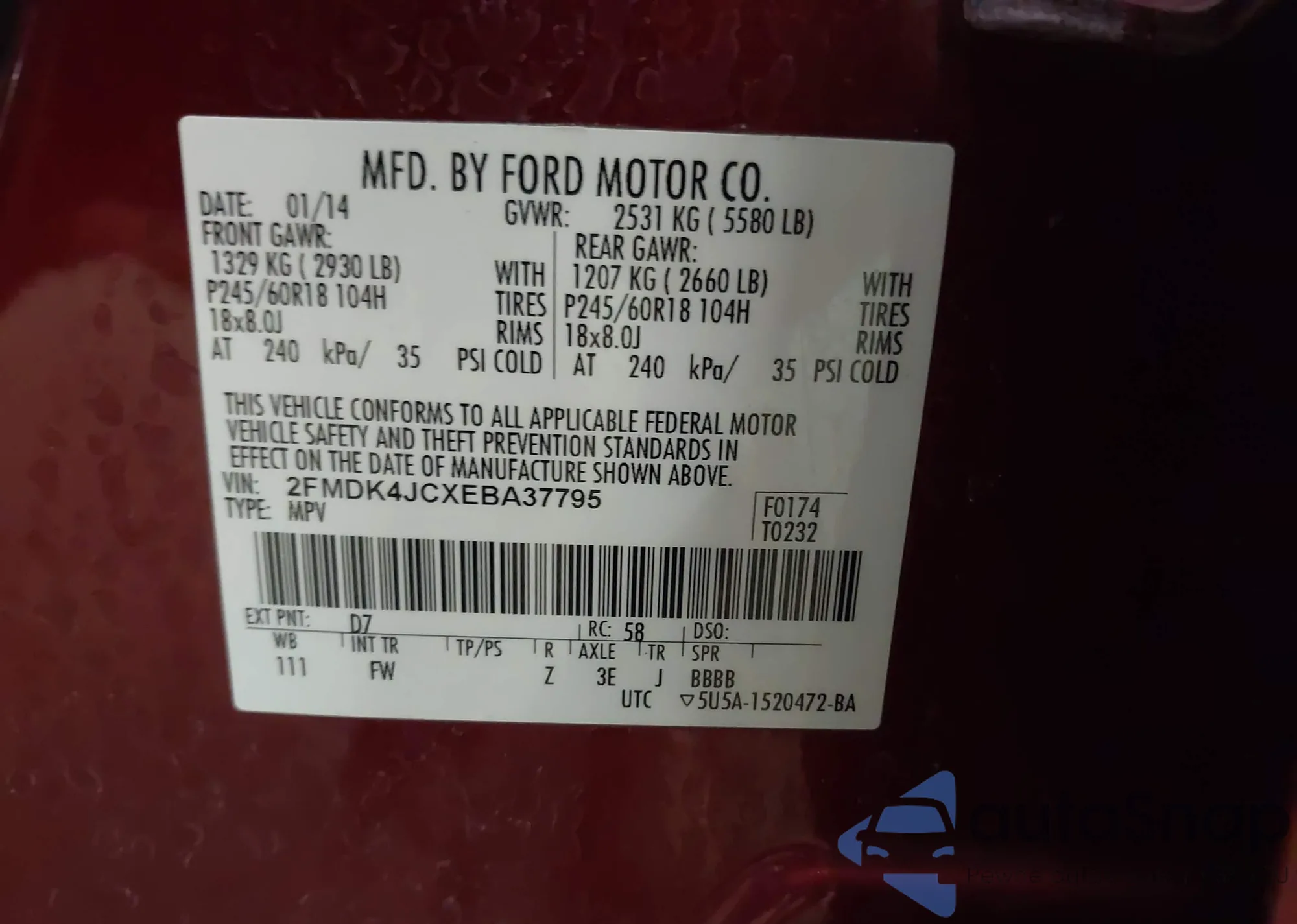 • VIN 2FMDK4JCXEBA37795