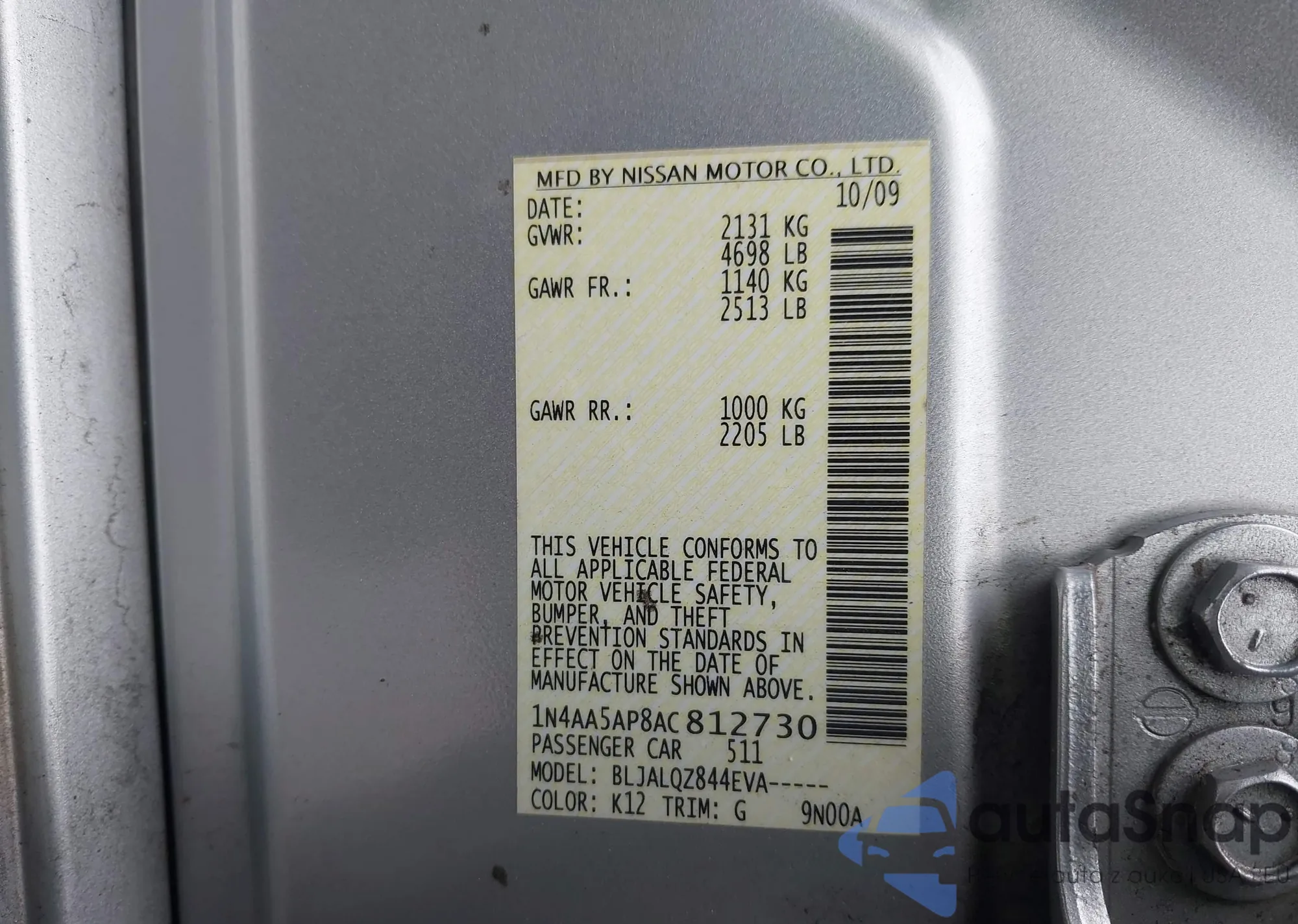 LOT: 43818197 VIN: 1N4AA5AP8AC812730