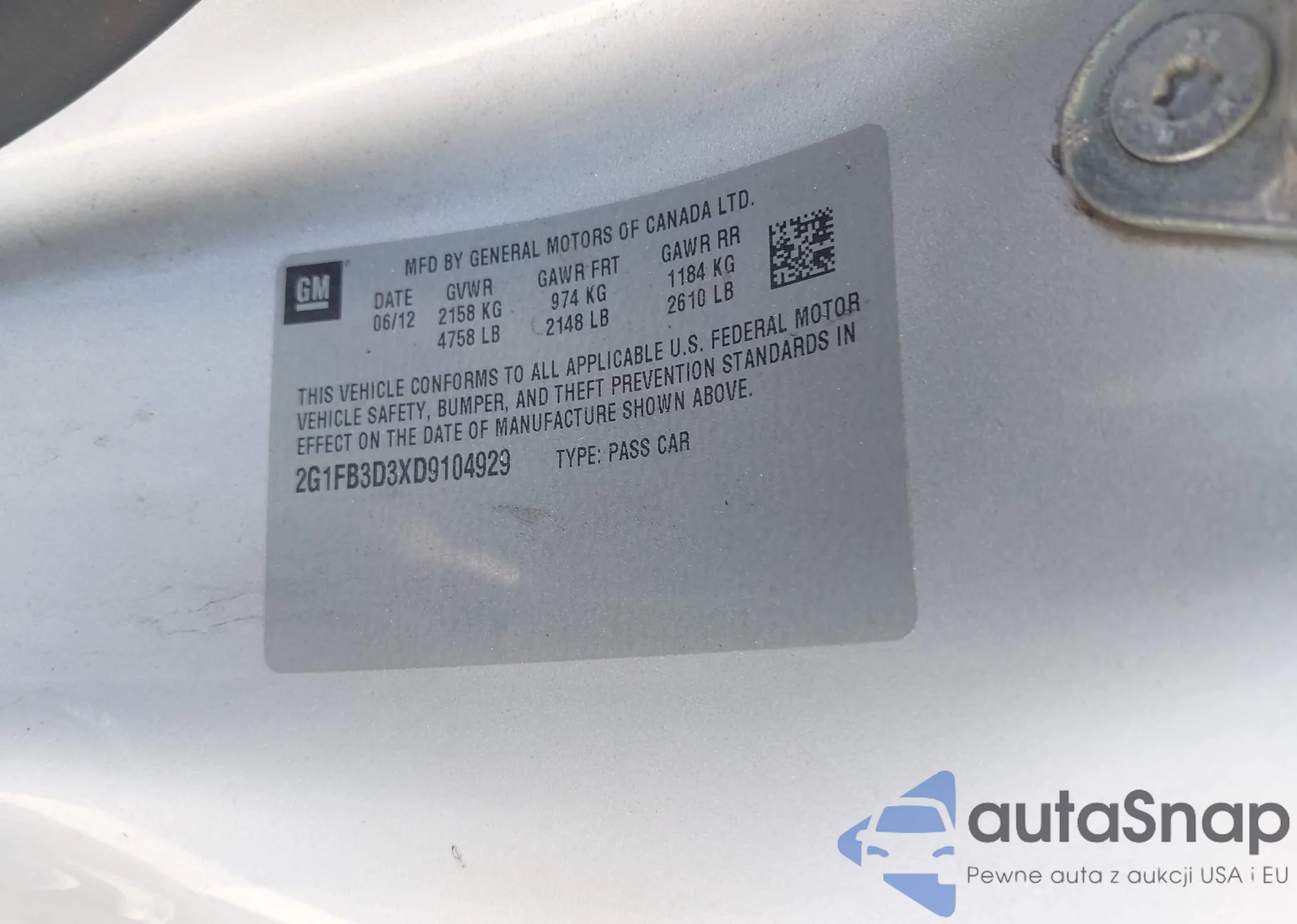 LOT: 43052570 VIN: 2G1FB3D3XD9104929