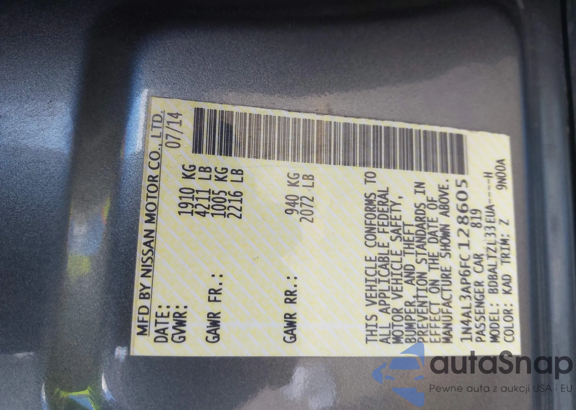 LOT: 43481365 VIN: 1N4AL3AP6FC128605