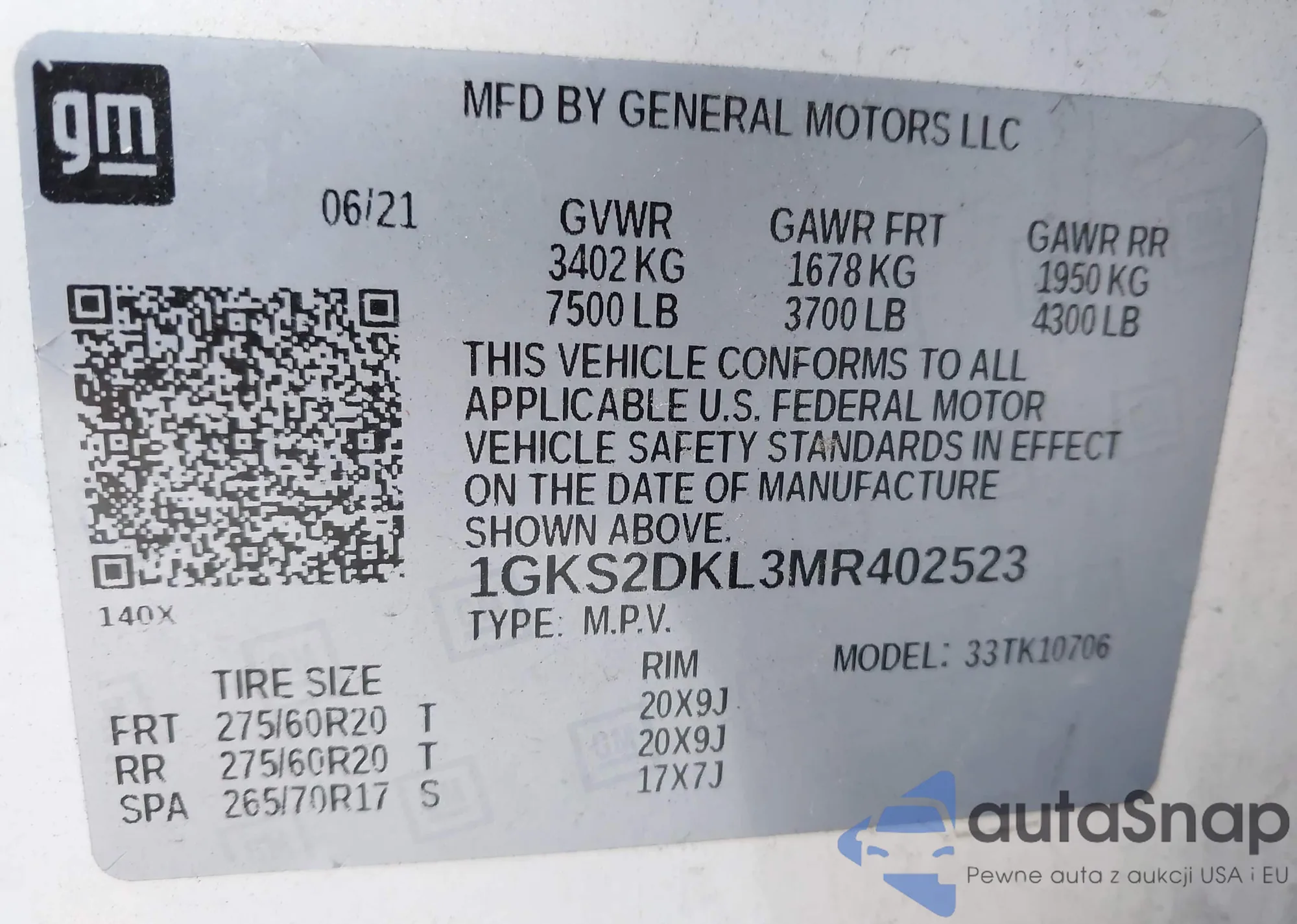 LOT: 43752352 VIN: KM8J74A60MU017126
