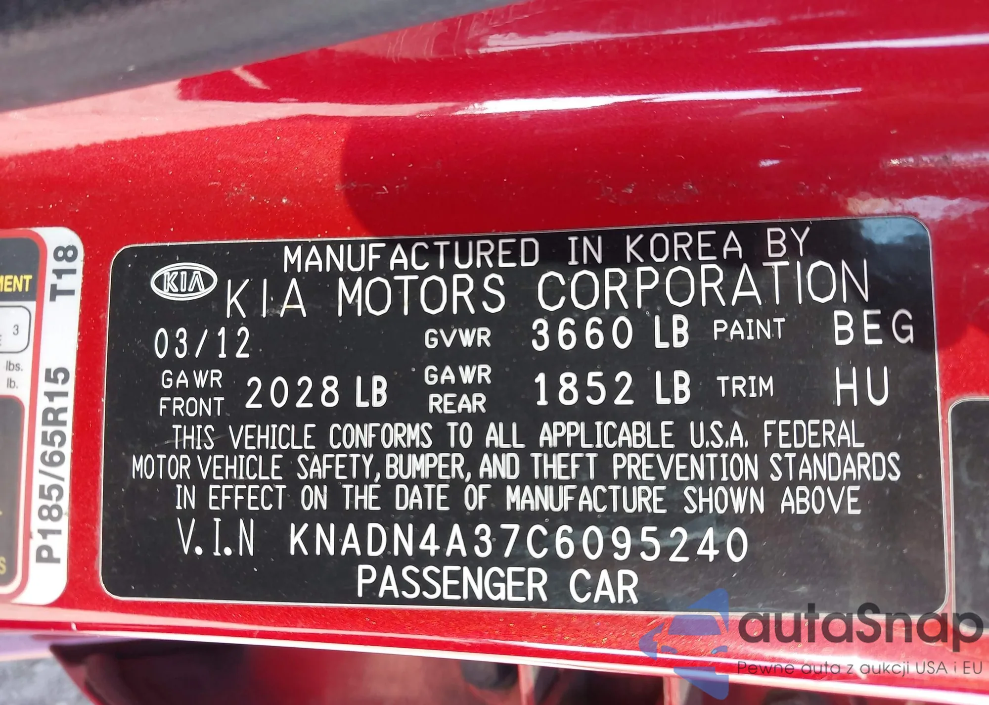 • VIN 5TDBK3EH0CS123558