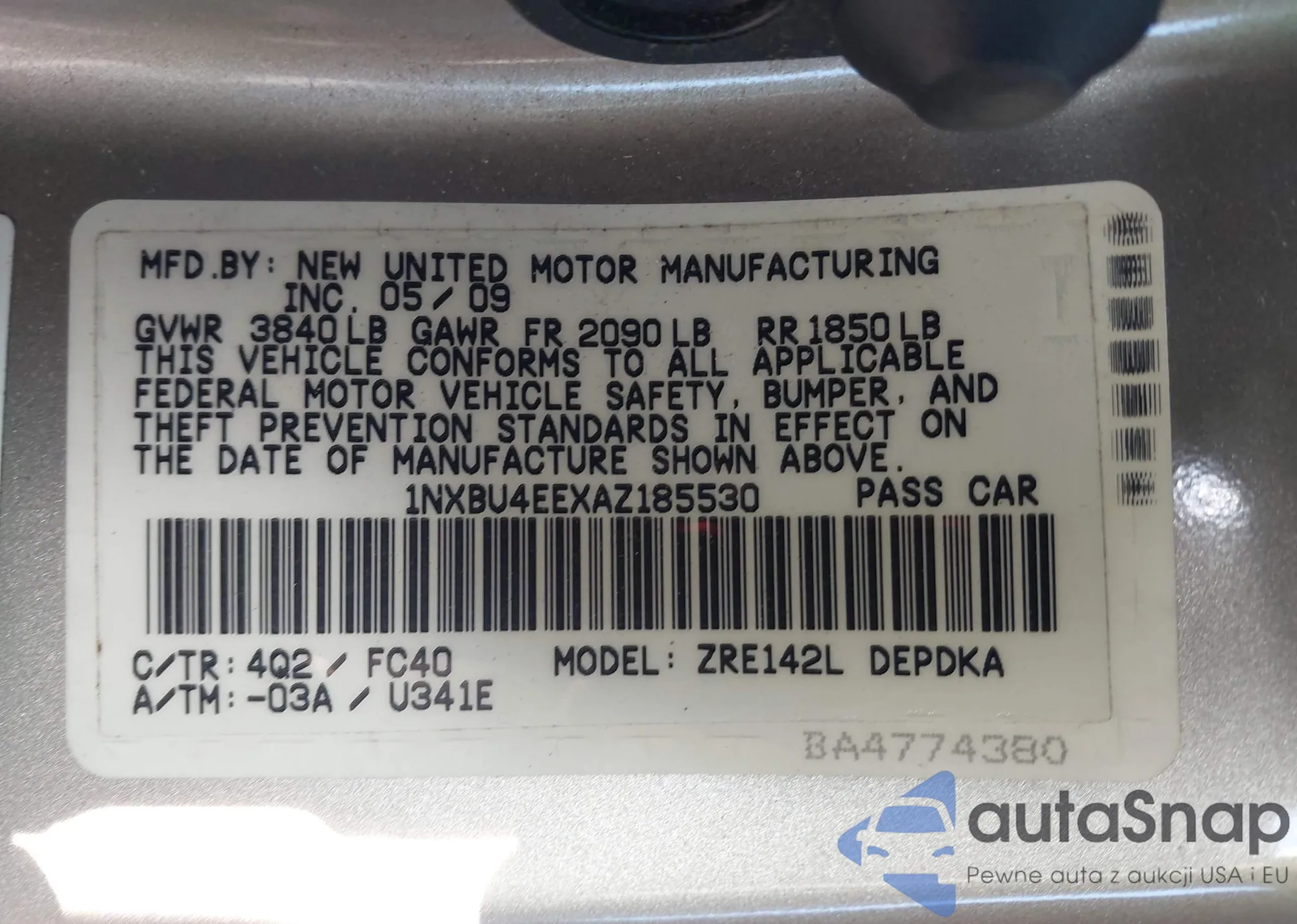 • VIN 1NXBU4EEXAZ185530