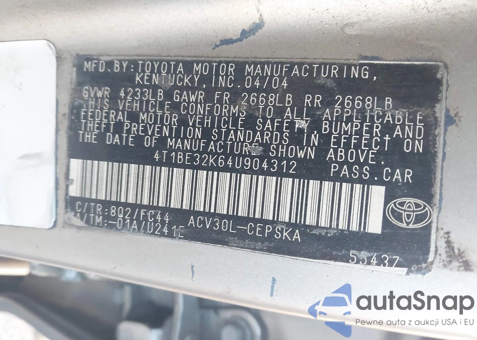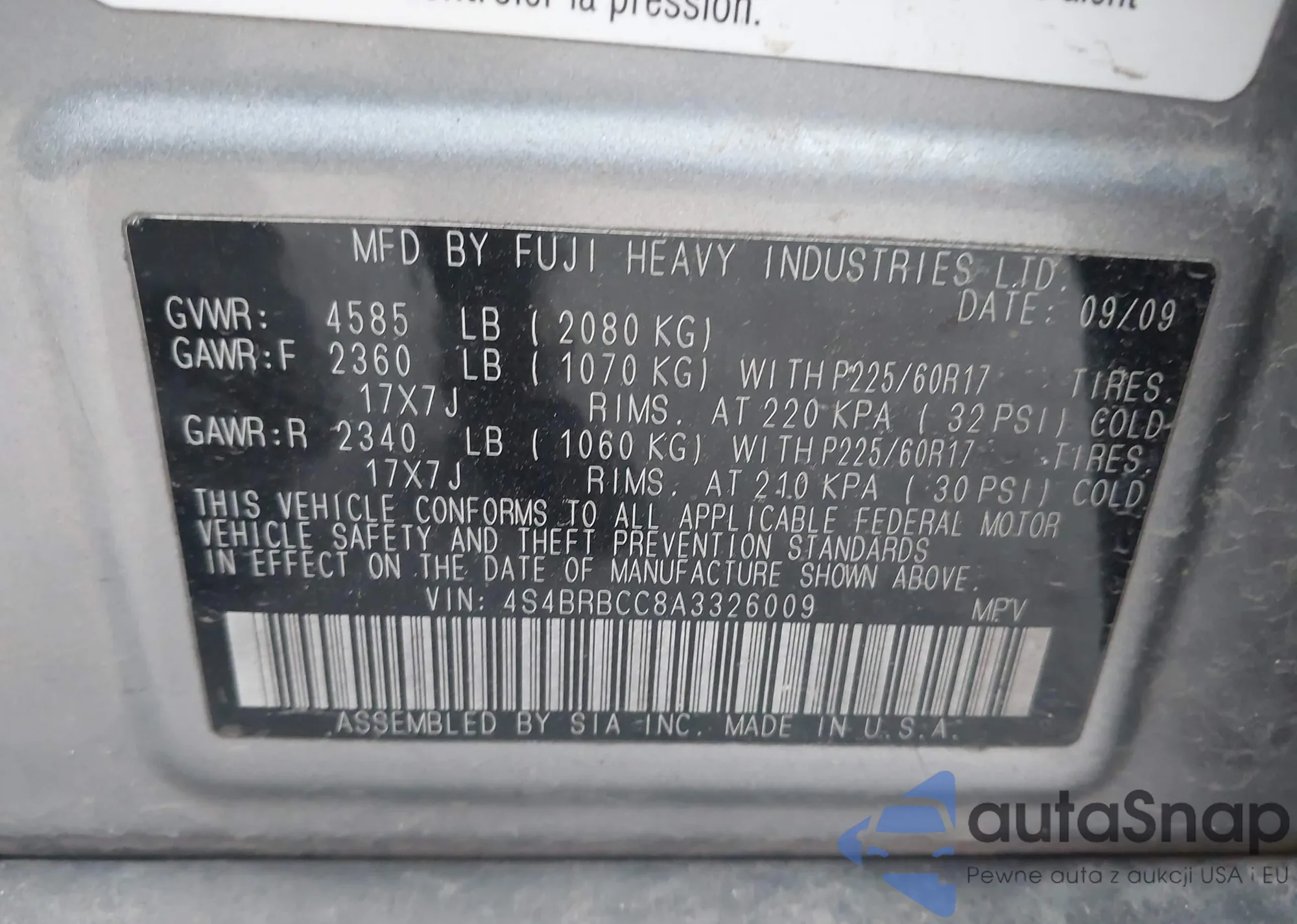 LOT: 43705418 VIN: 4S4BRBCC8A3326009