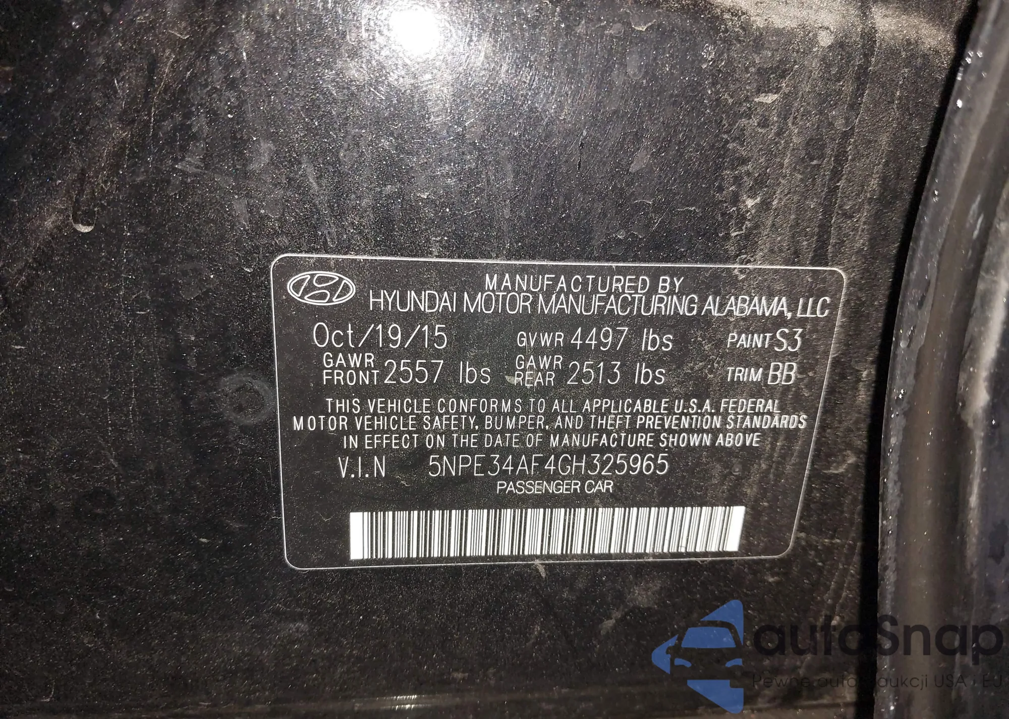 • VIN 5NPE34AF4GH325965