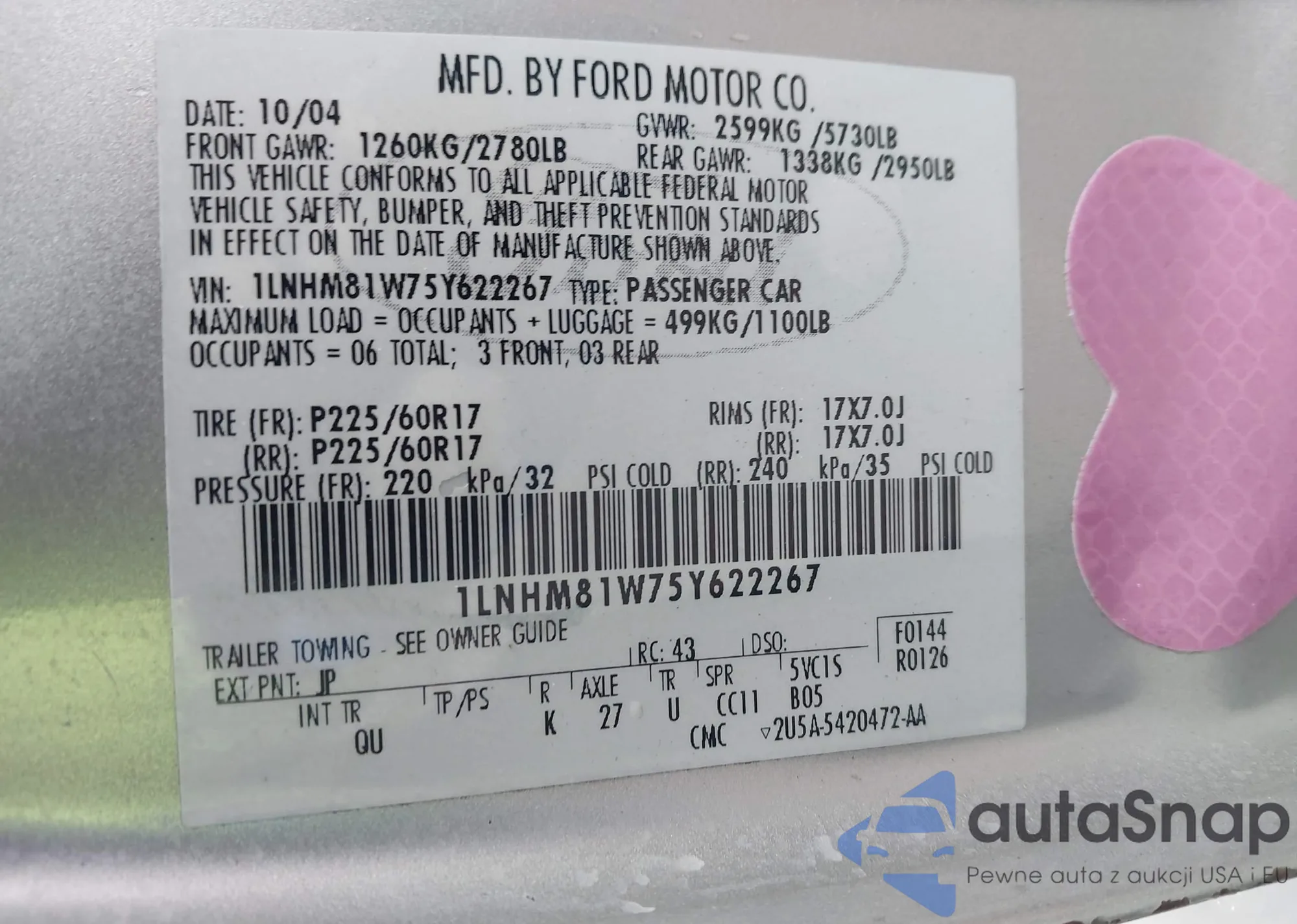 • VIN 1FTPF17L4YNA20382