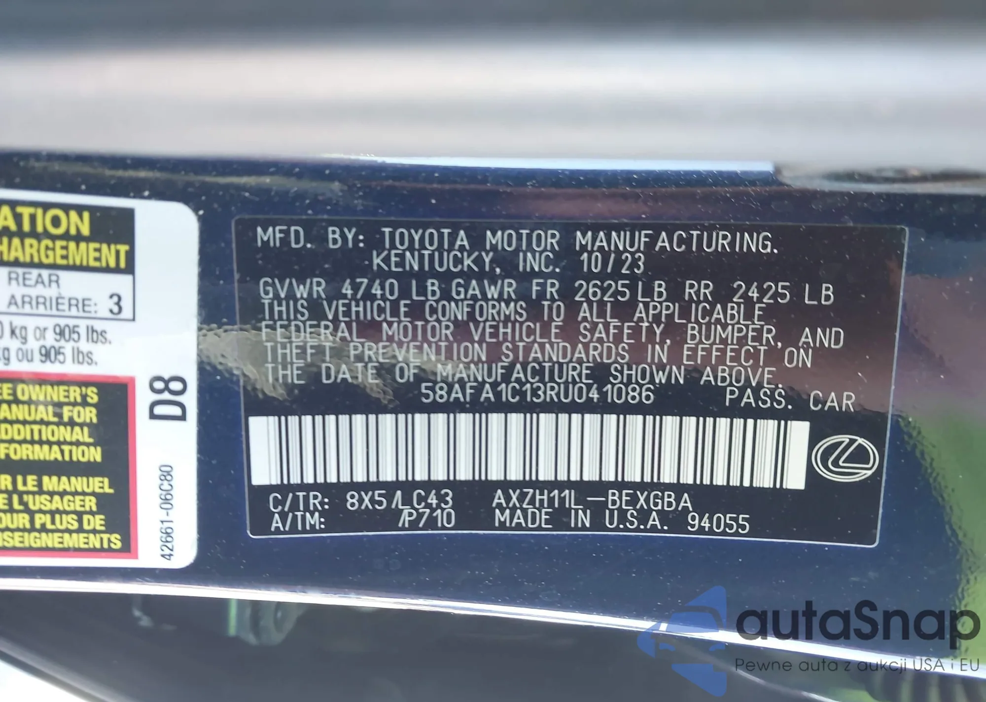 • VIN 58AFA1C13RU041086