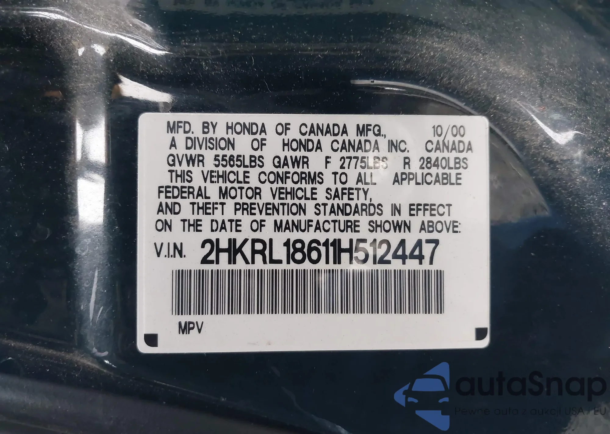 • VIN 2HKRL18611H512447