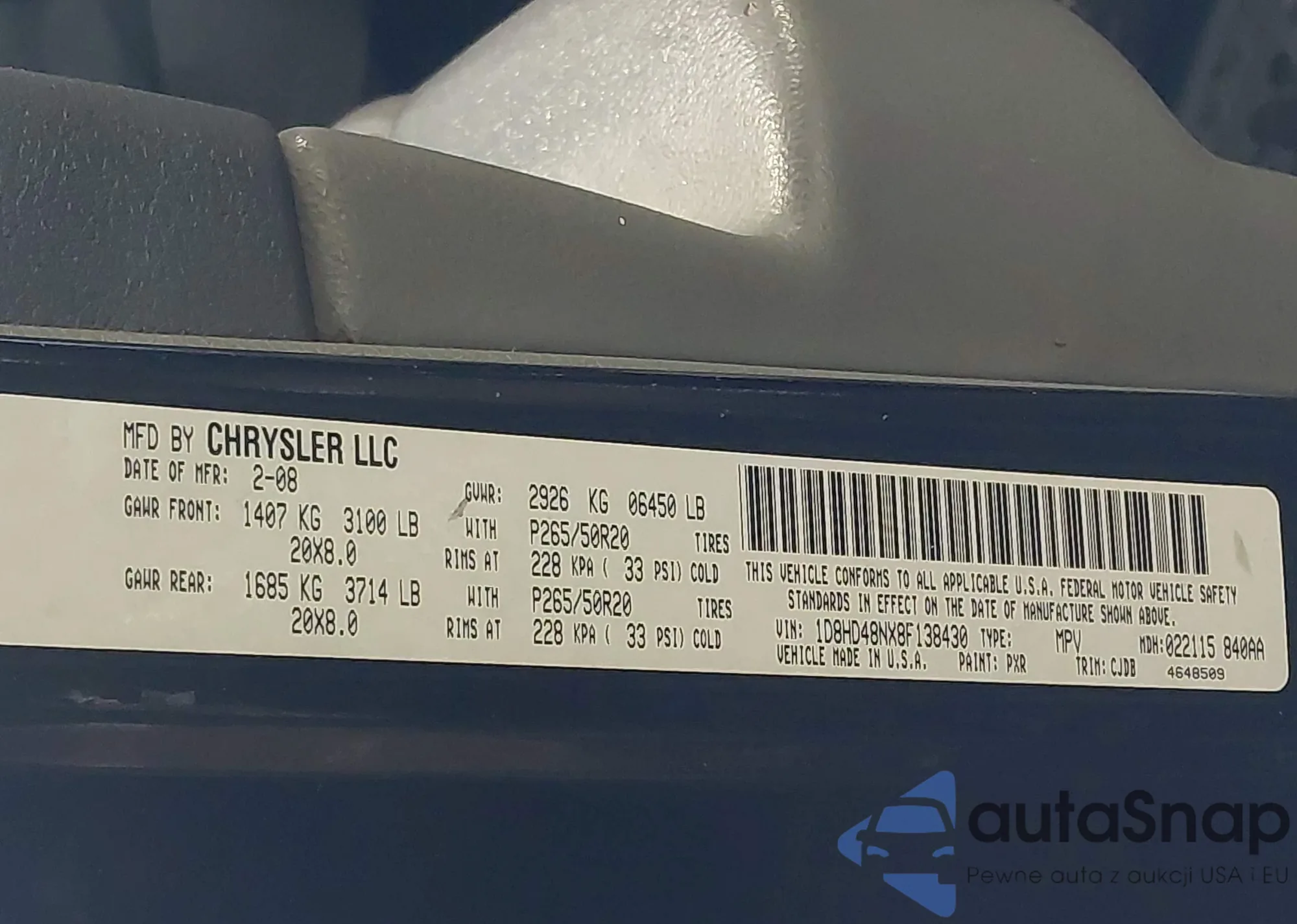 • VIN 1D8HD48NX8F138430