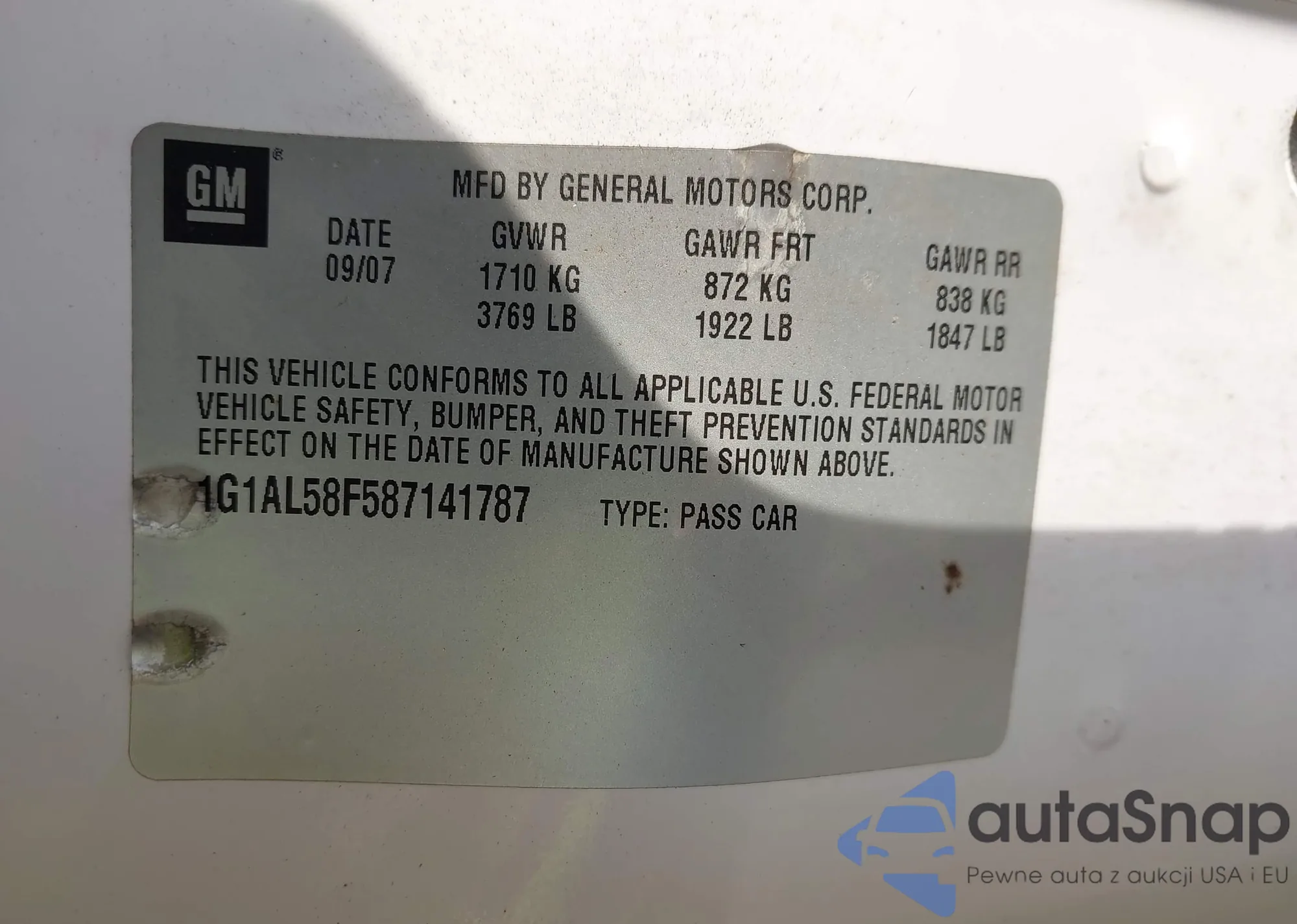 • VIN 1G1AL58F587141787