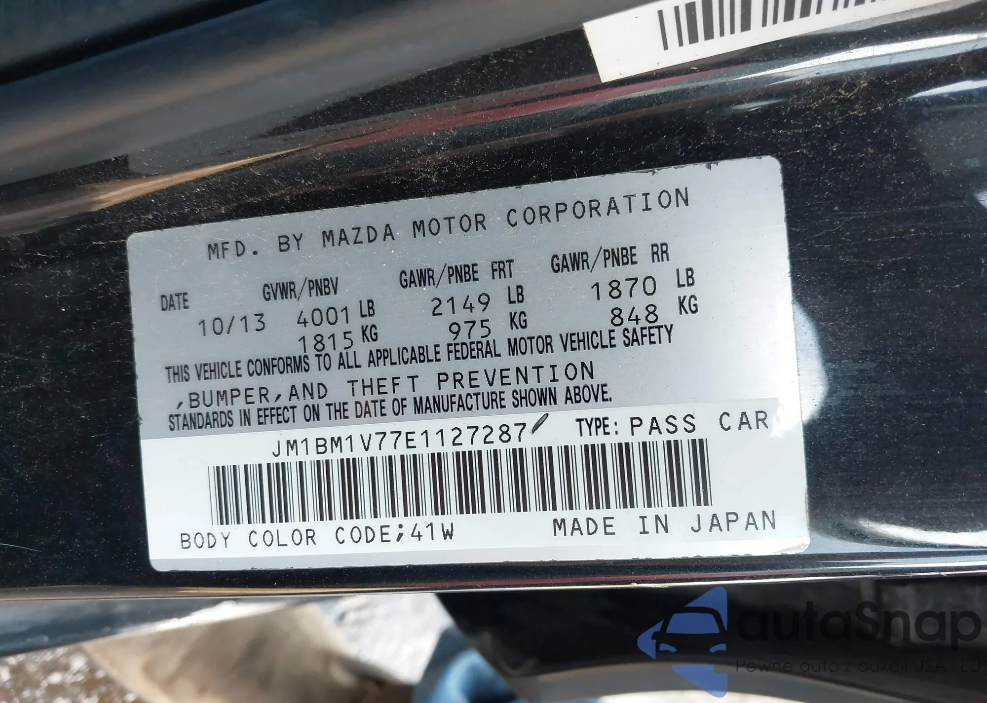 LOT: 43306429 VIN: JM1BM1V77E1127287