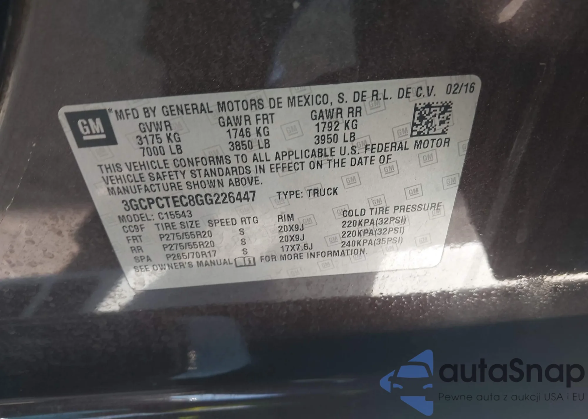 • VIN 3GCPCTEC8GG226447