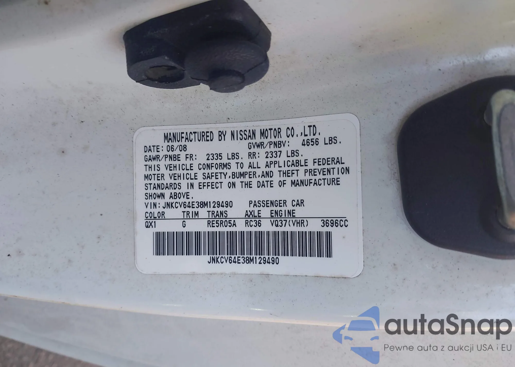 LOT: 43718370 VIN: JNKCV64E38M129490
