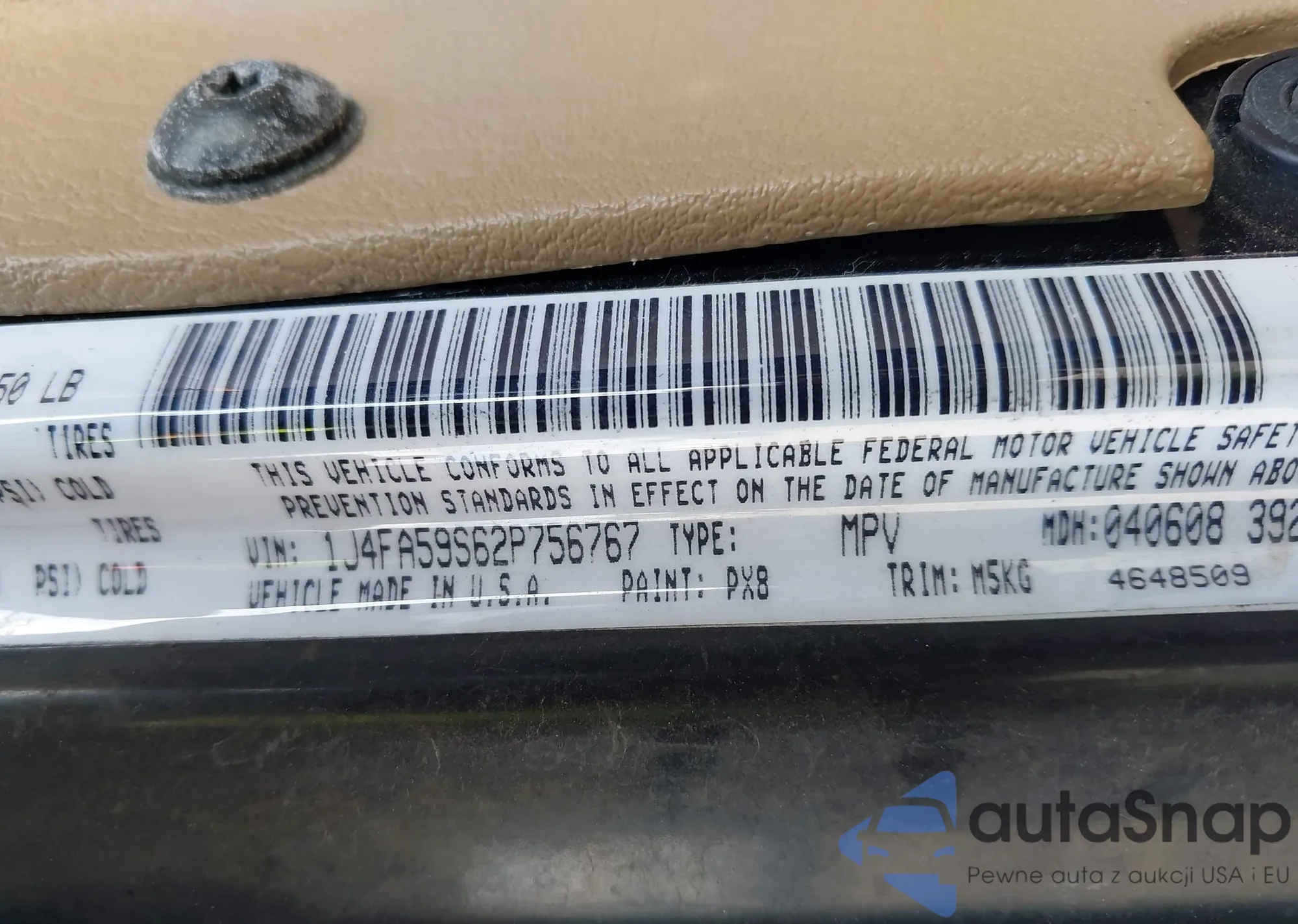 LOT: 43730556 VIN: 1J4FA59S62P756767
