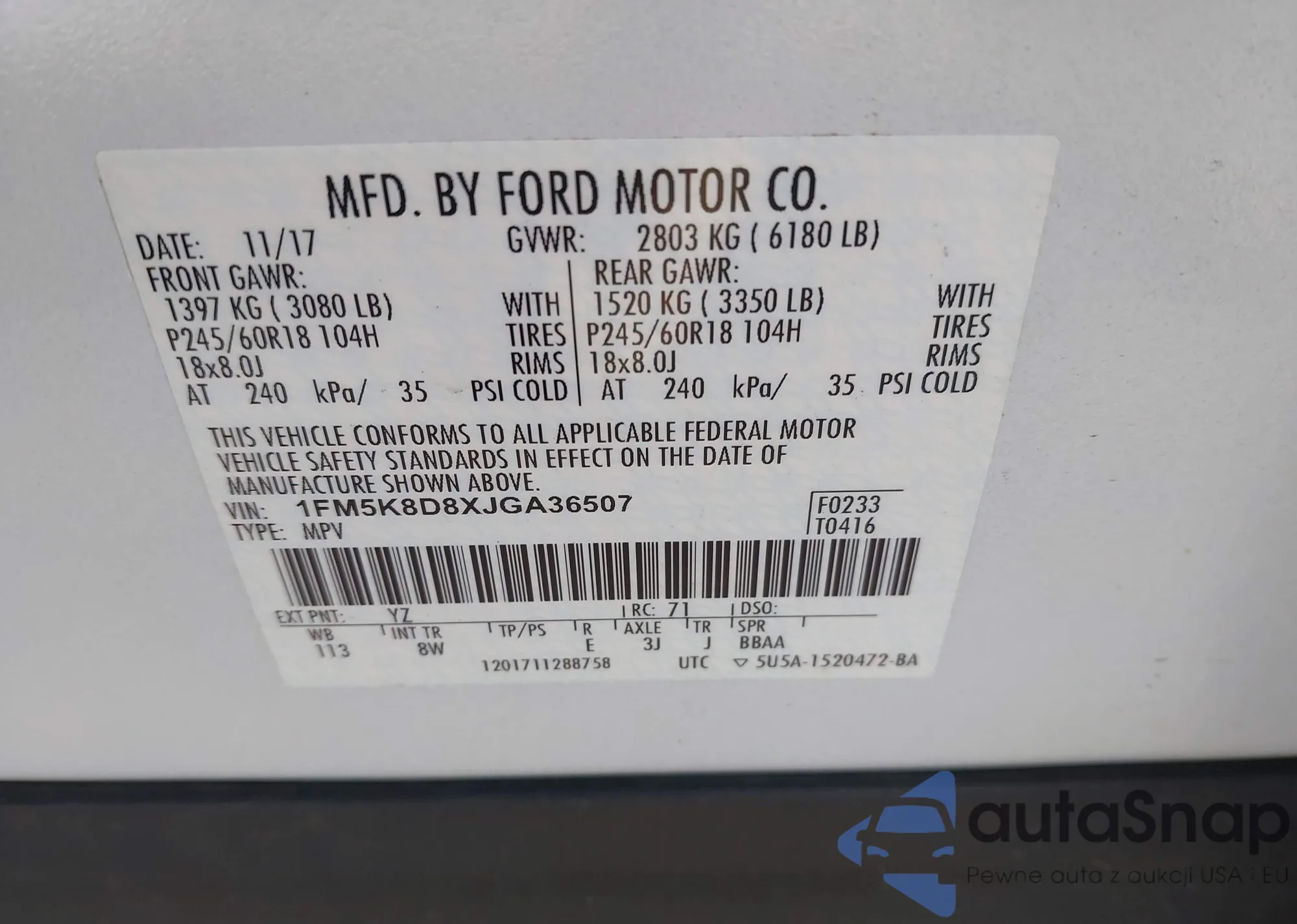 • VIN 1FMCU0MN5PUA61138