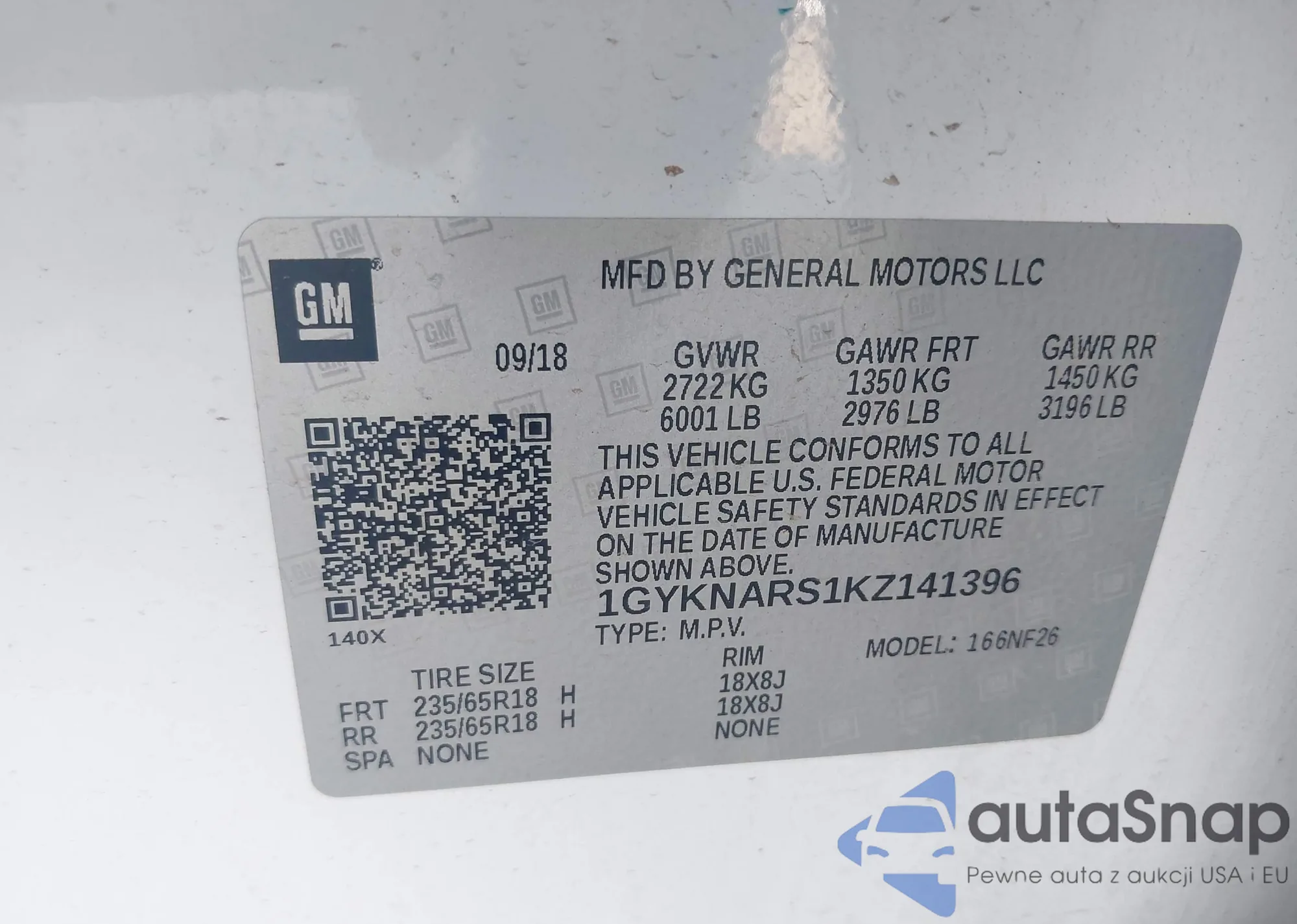 LOT: 43250277 VIN: 1GYKNARS1KZ141396