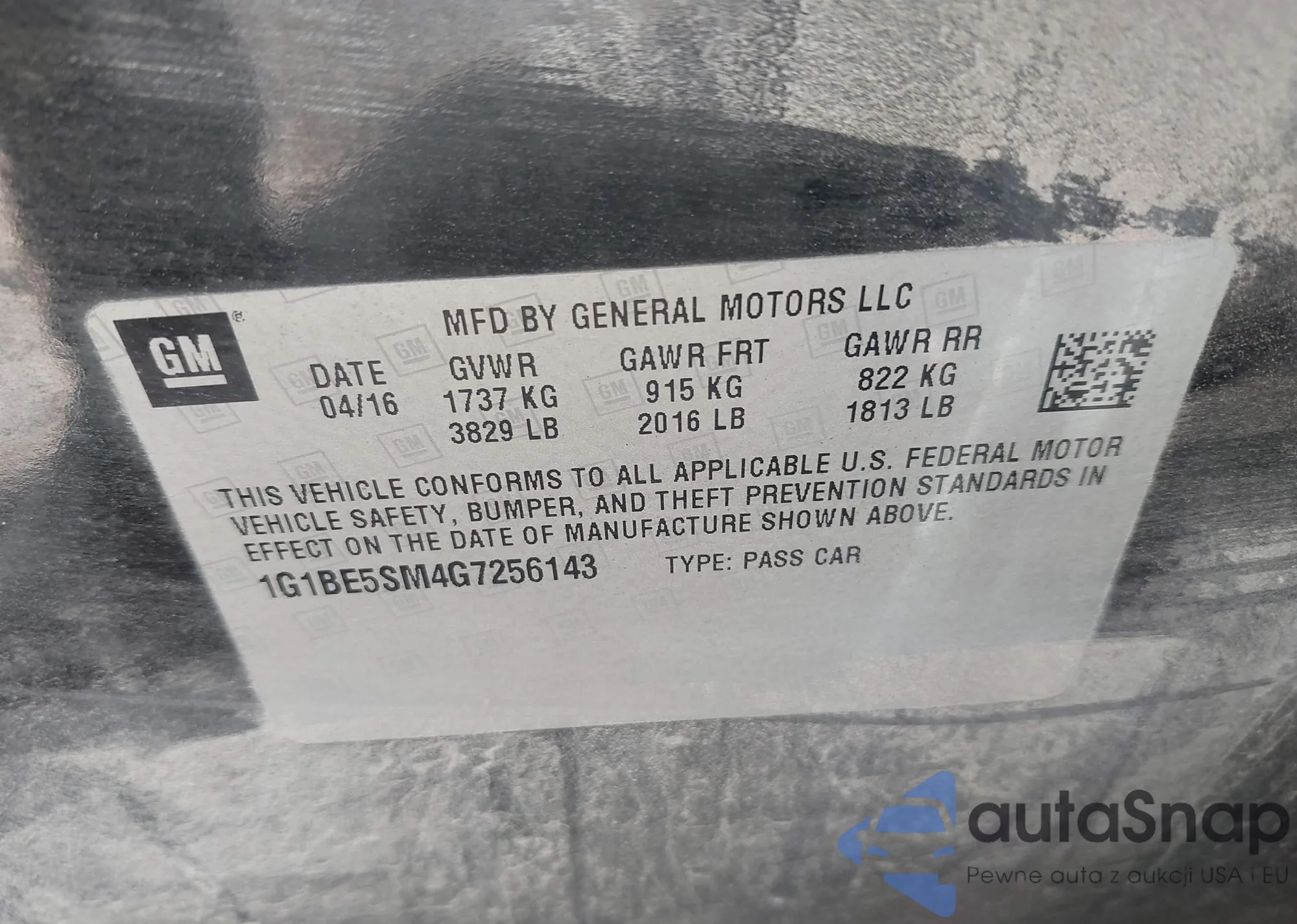LOT: 43472933 VIN: 1G1BE5SM4G7256143