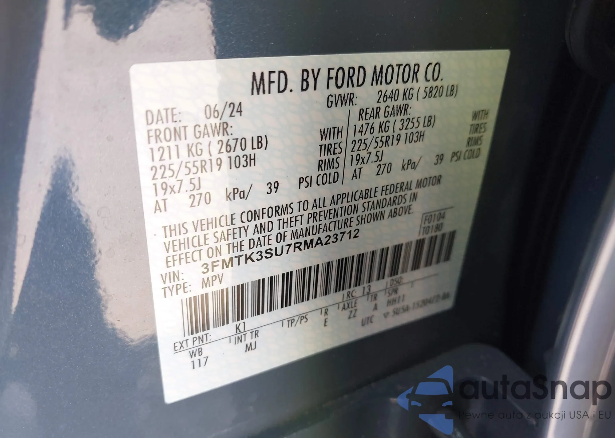 • VIN 3FMTK3SU7RMA23712