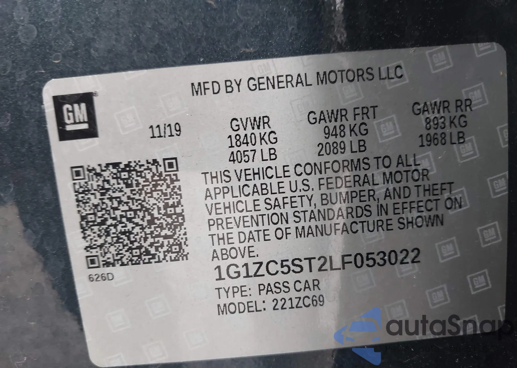 • VIN 1G1ZC5ST2LF053022