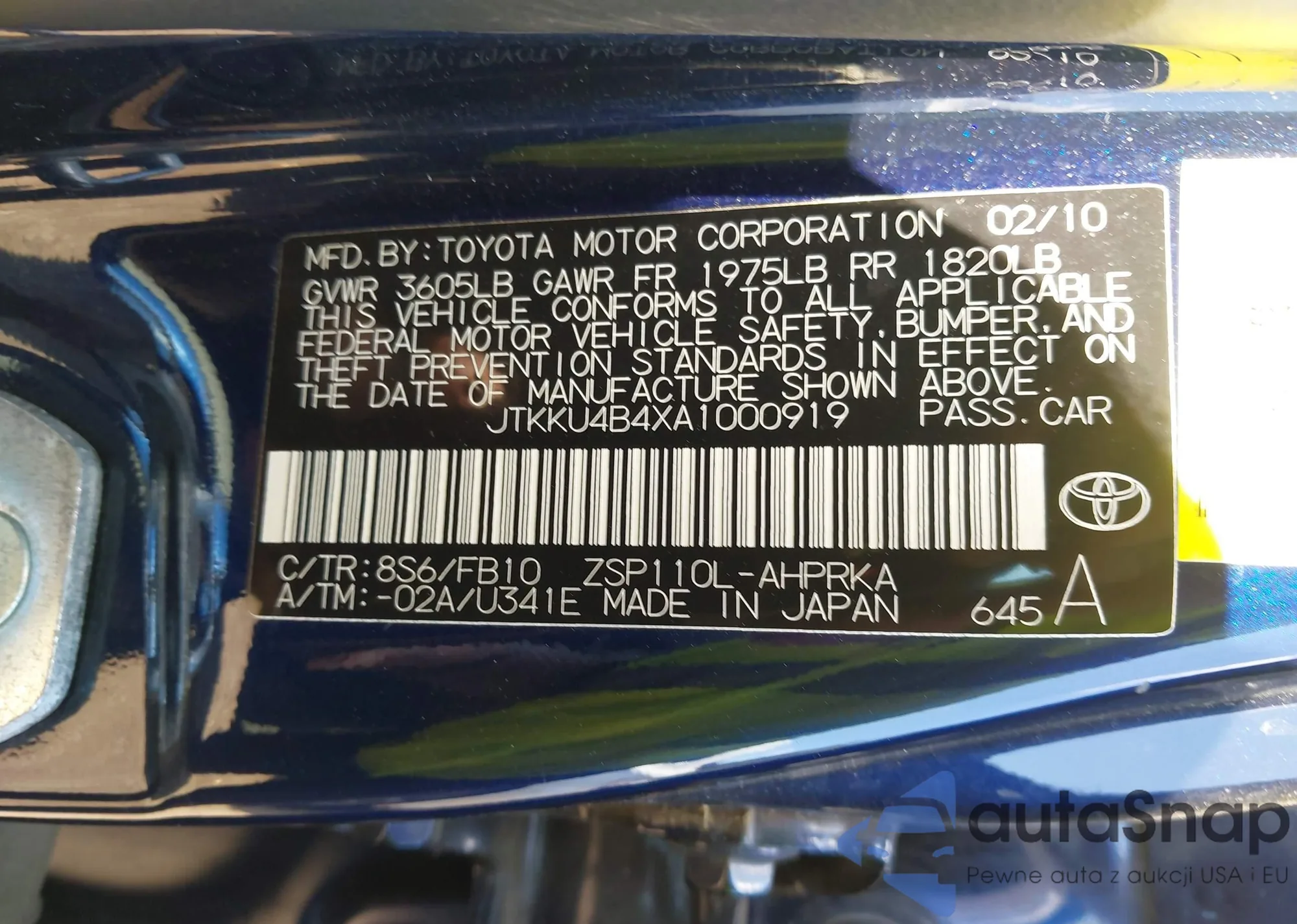• VIN JTKKU4B4XA1000919