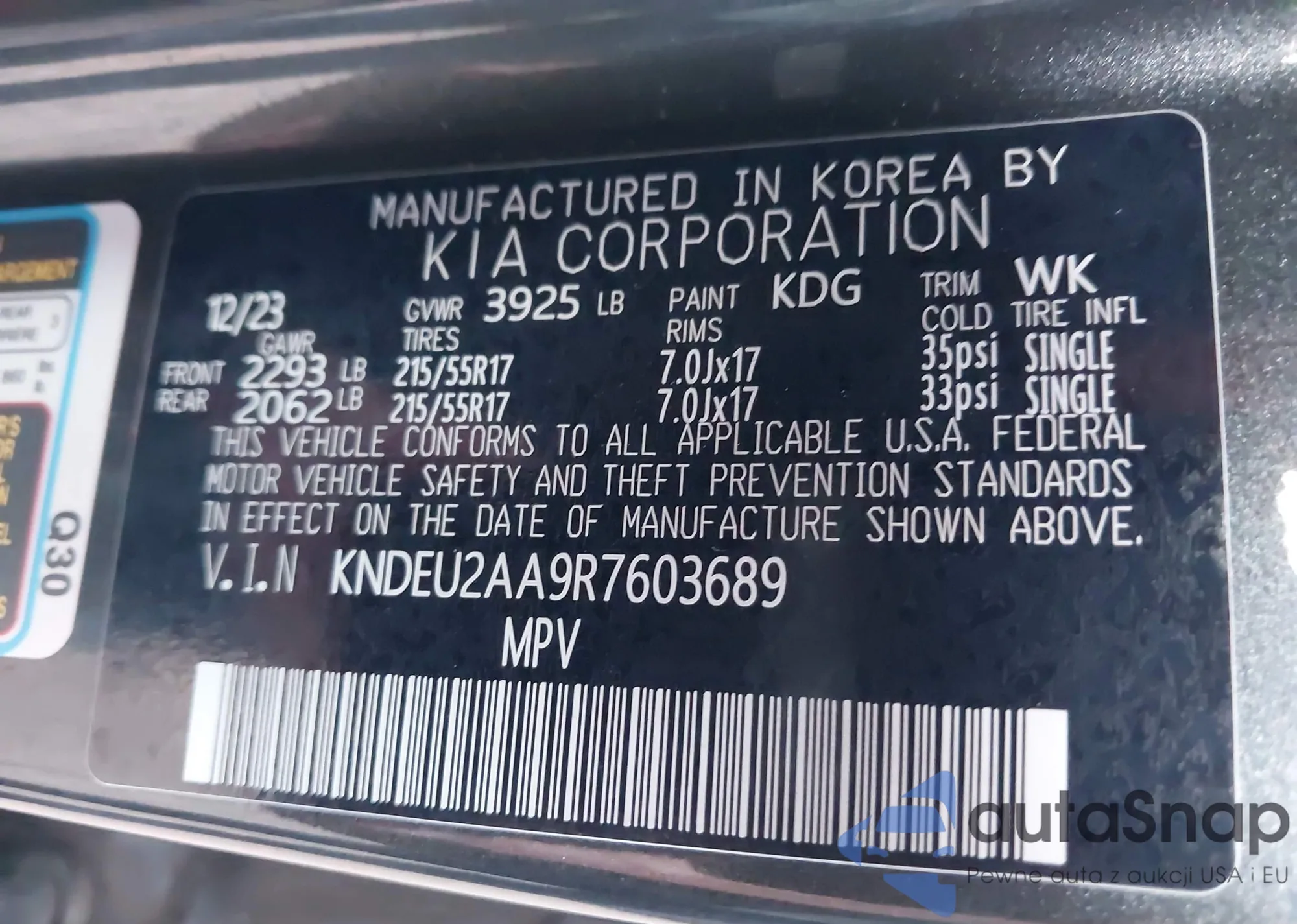 • VIN KNDEU2AA9R7603689