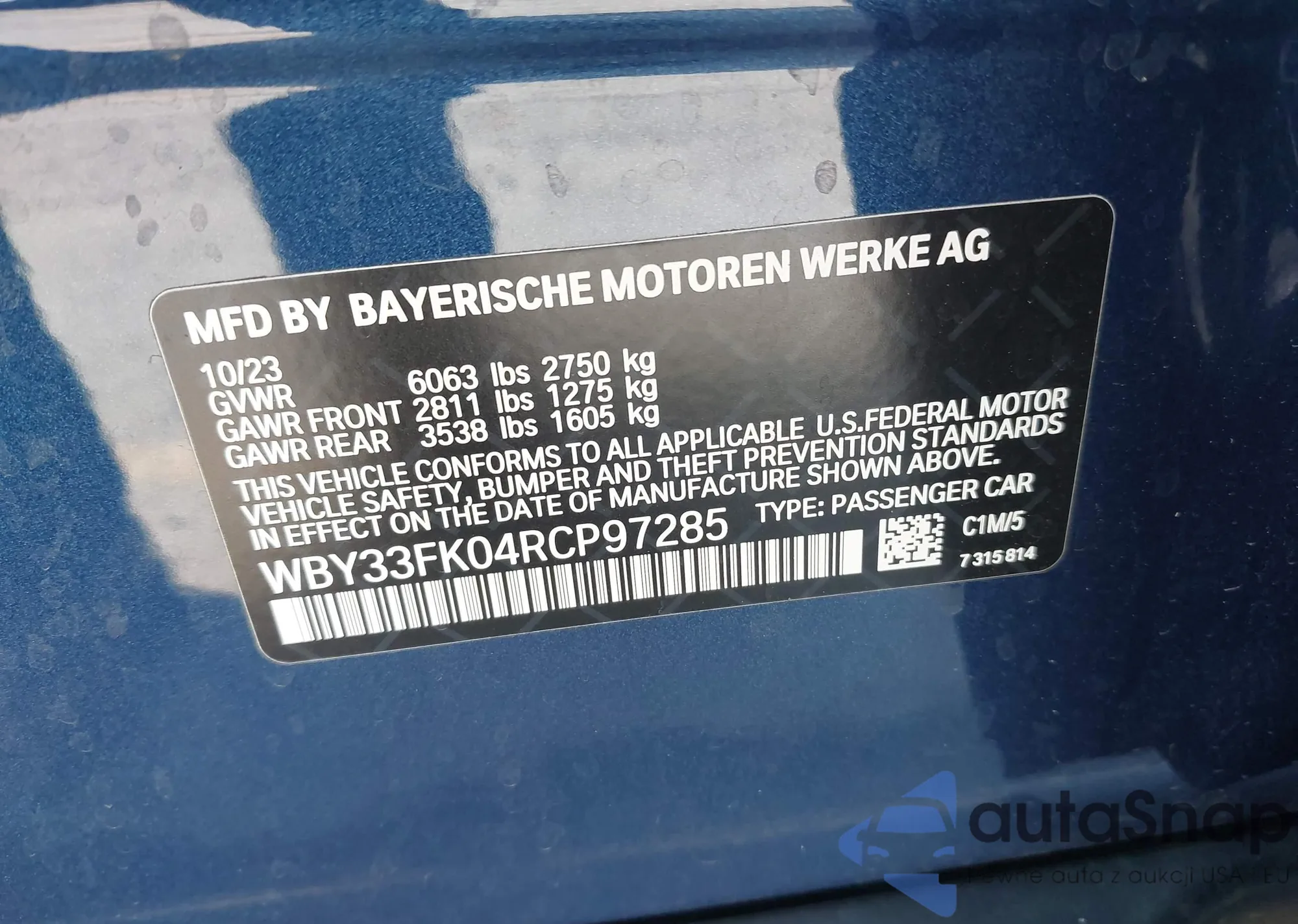 LOT: 43290779 VIN: WBY33FK04RCP97285