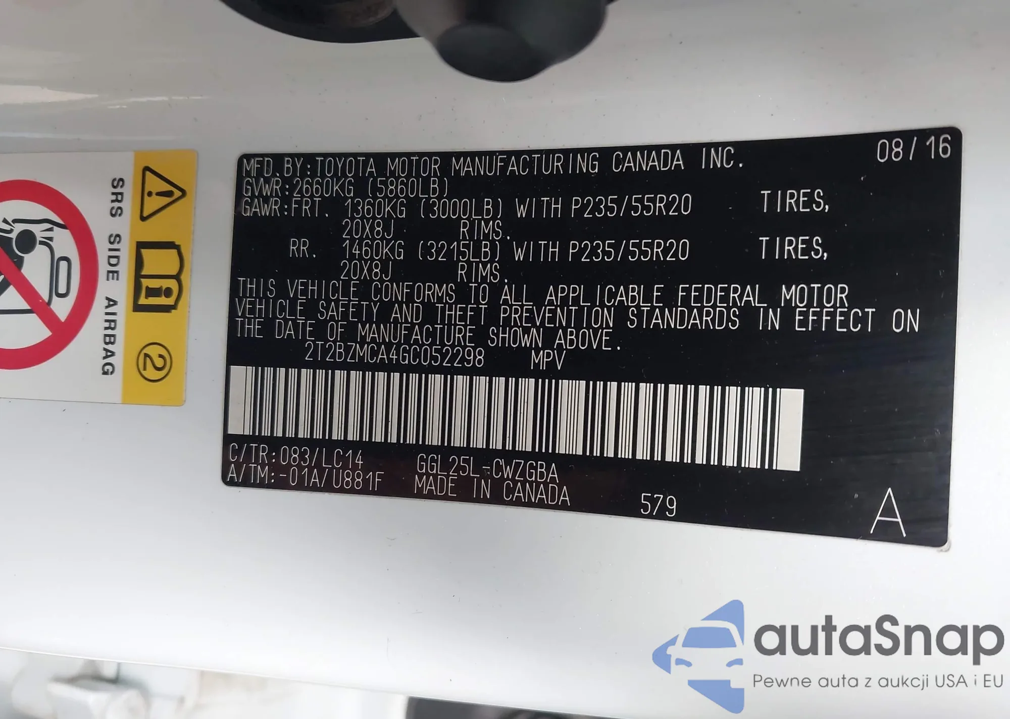 • VIN 2T2BZMCA4GC052298