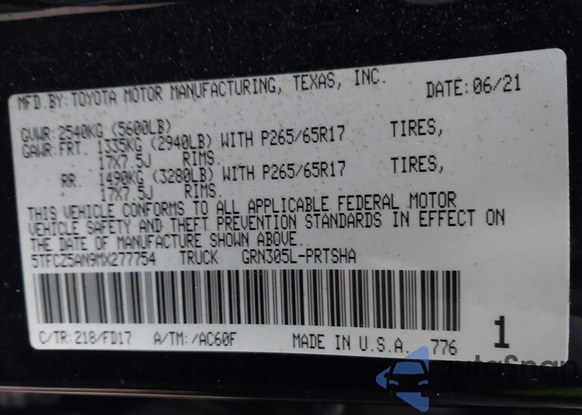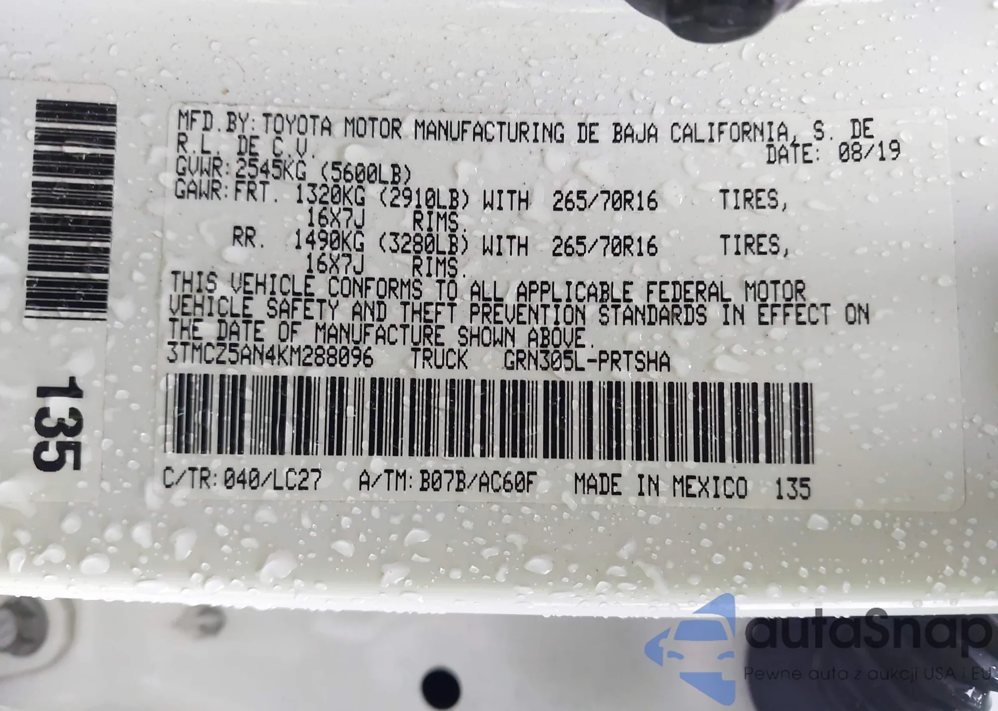 • VIN 3TMCZ5AN4KM288096