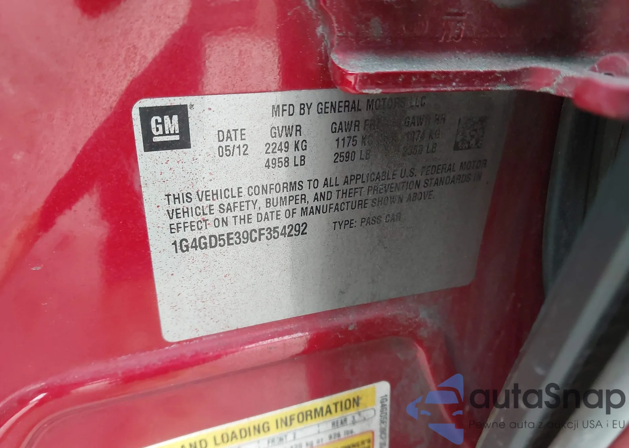 LOT: 43853653 VIN: 1G4GD5E39CF354292